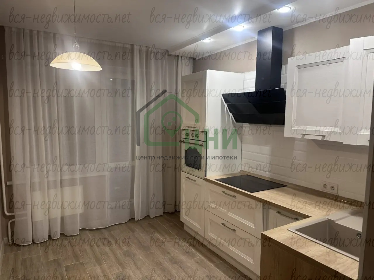 - Просторная кухня 11,5 кв.м. с выходом на лоджию, с панорамными окнами и кухонным гарнитуром