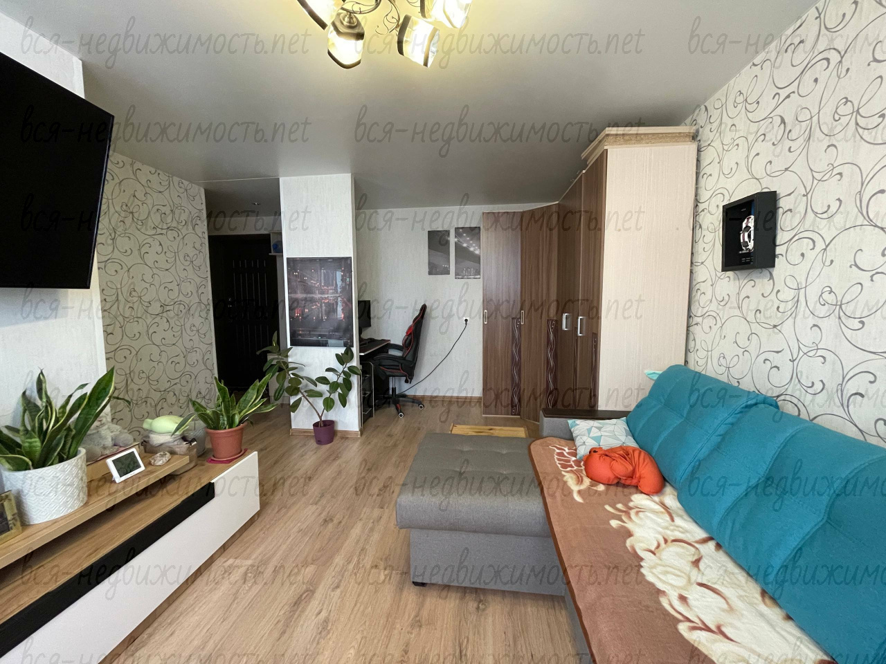 Квартира теплая , площадь составляет 29 кв.м, комната - 17кв.м., кухня -6 кв.м.