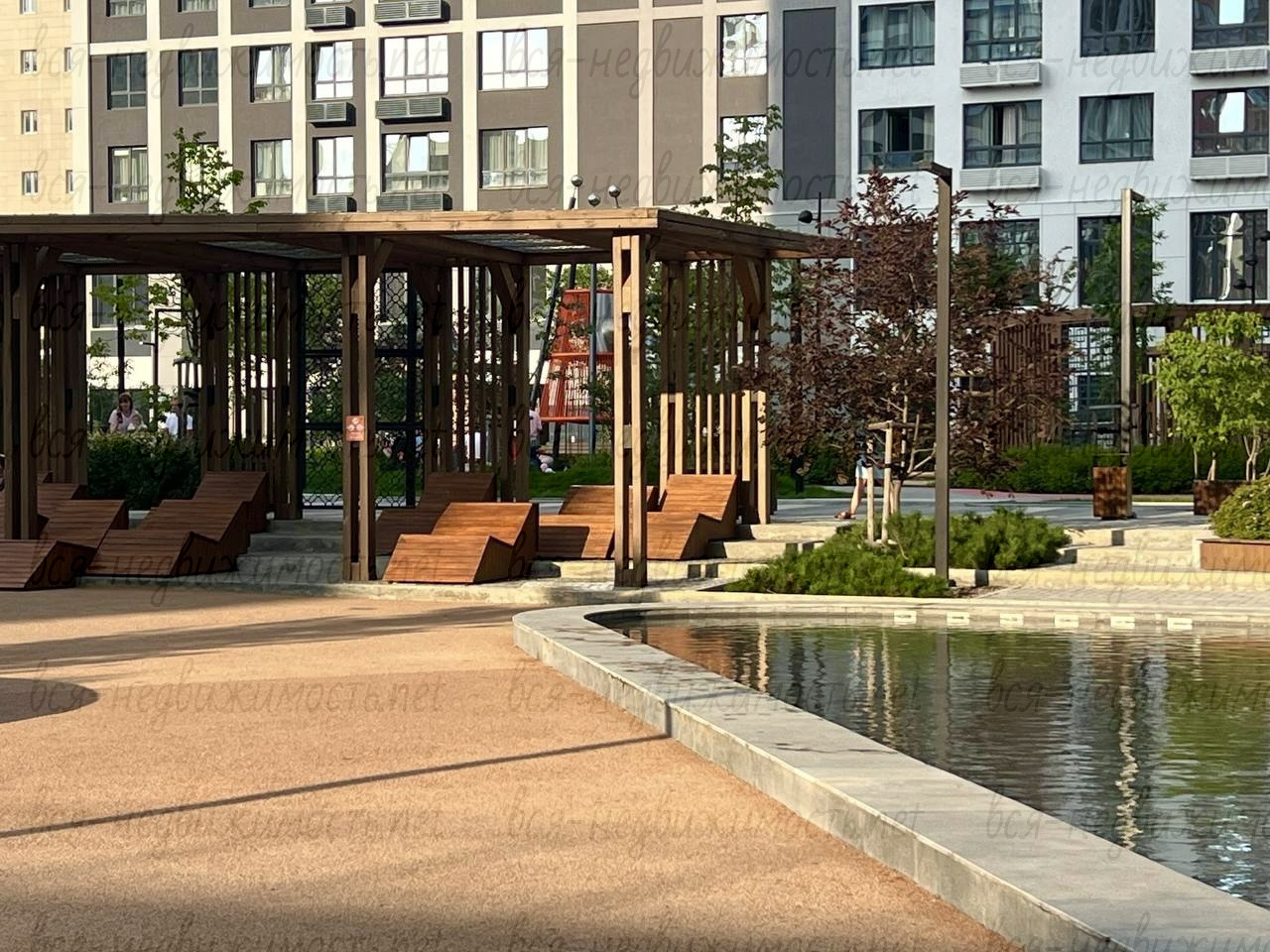 Инфраструктура: Магазины, рестораны, кафе на первых этажах, пешеходная галерея, гипермаркет, спа-центр, детские сады, поликлиника, салон красоты, бутики, автомойка, беговые и велодорожки, собственный водоем, детские площадки, авторские зоны отдыха.