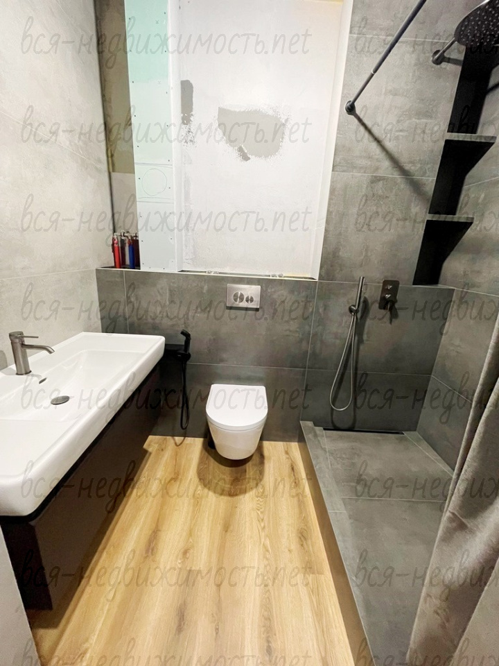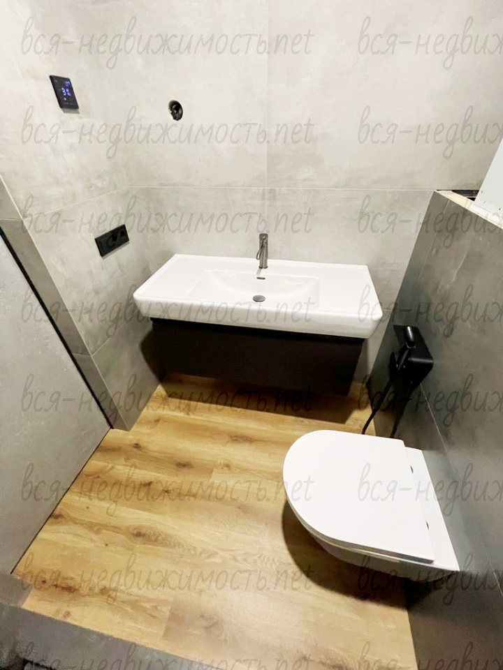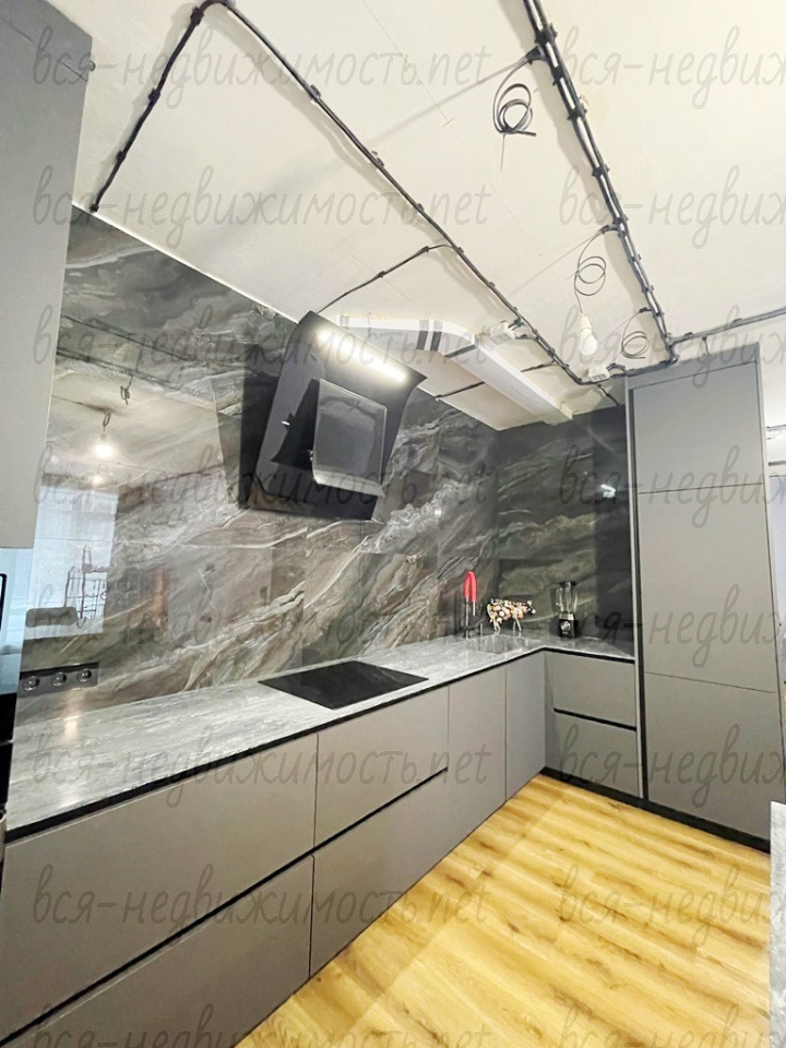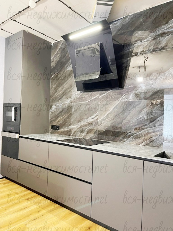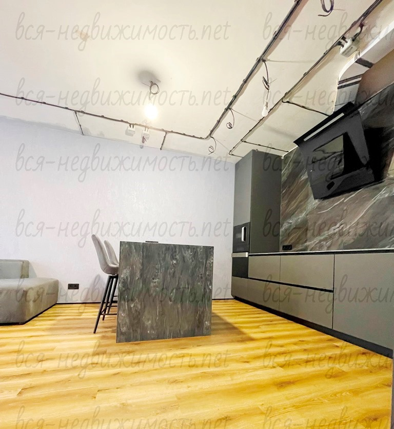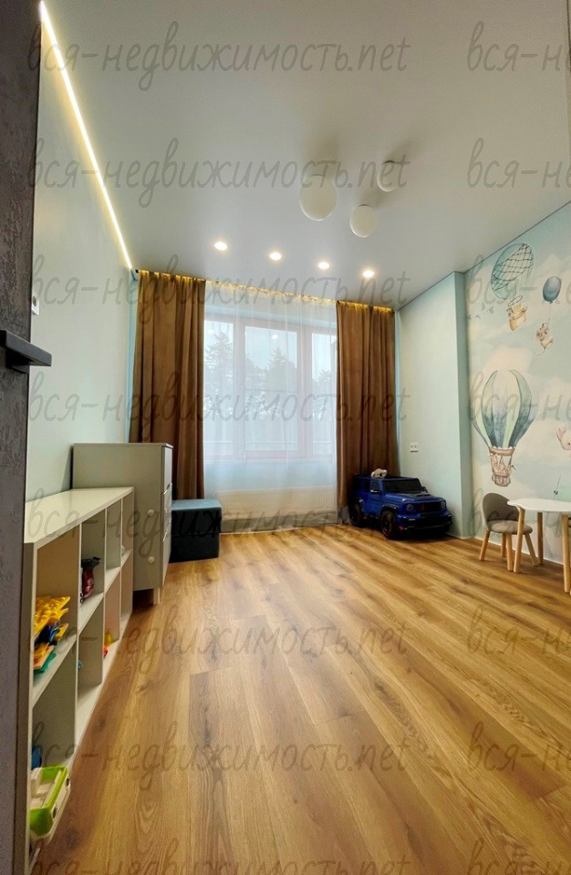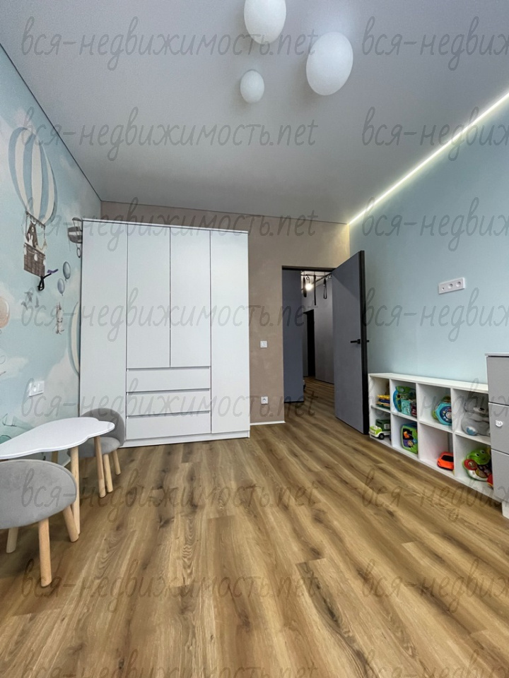 В квартире сделан качественный ремонт: стены – выравнены, декоративная штукатурка; пол – выравнивали, переделывали стяжку, кварц -винил. Сан узел – керамогранит. По всей квартире заменена электропроводка. В детской комнате – натяжной потолок с теневым профилем, а также натяжной потолок в гардеробной.