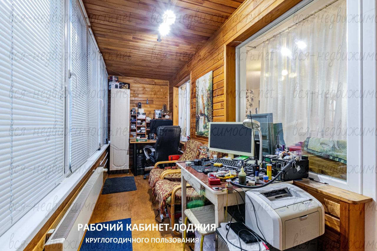 Лоджия - рабочий кабинет круглый год: стены утеплены- отделаны доской, есть дополнительный обогрев.