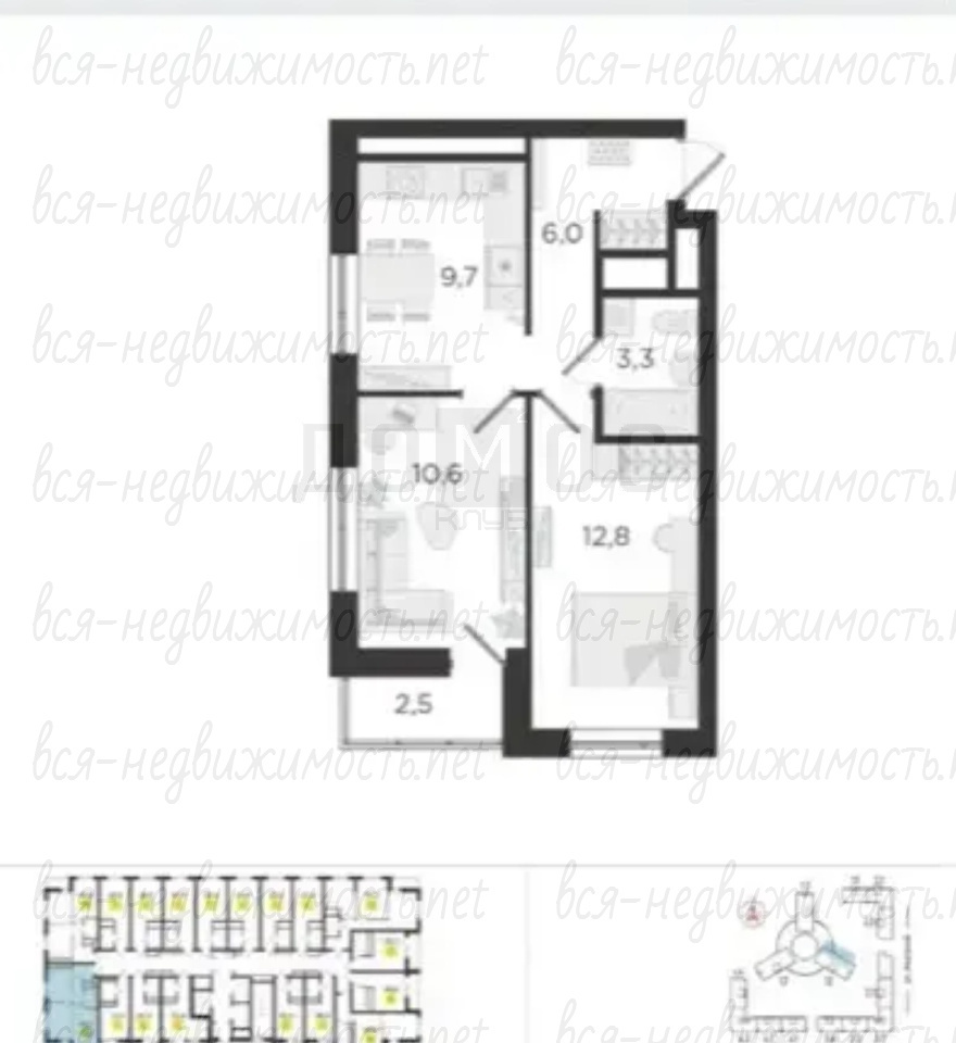 Режим двух спален и отдельной кухней.