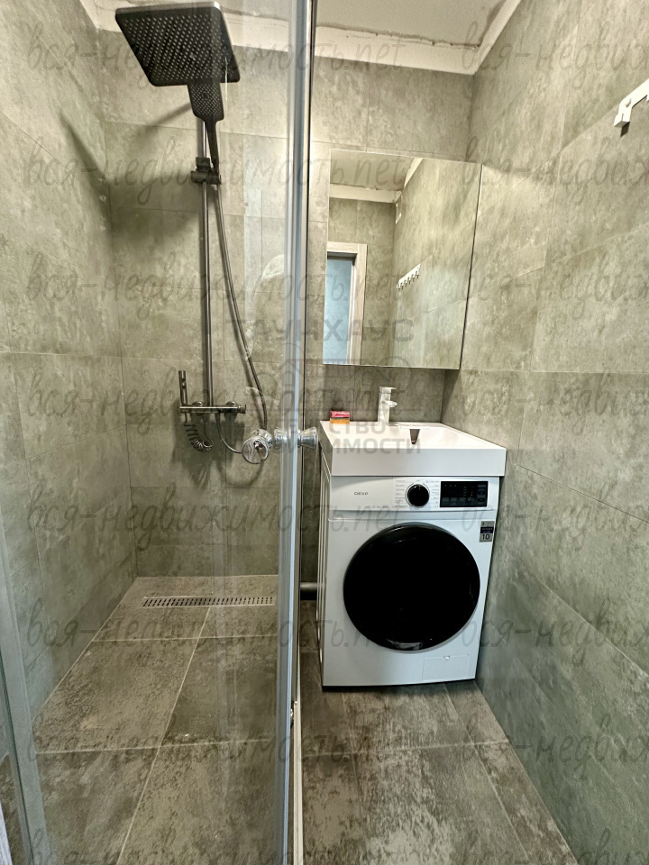 - Санузел полностью в кафеле. Душевая с тропическим душем.
