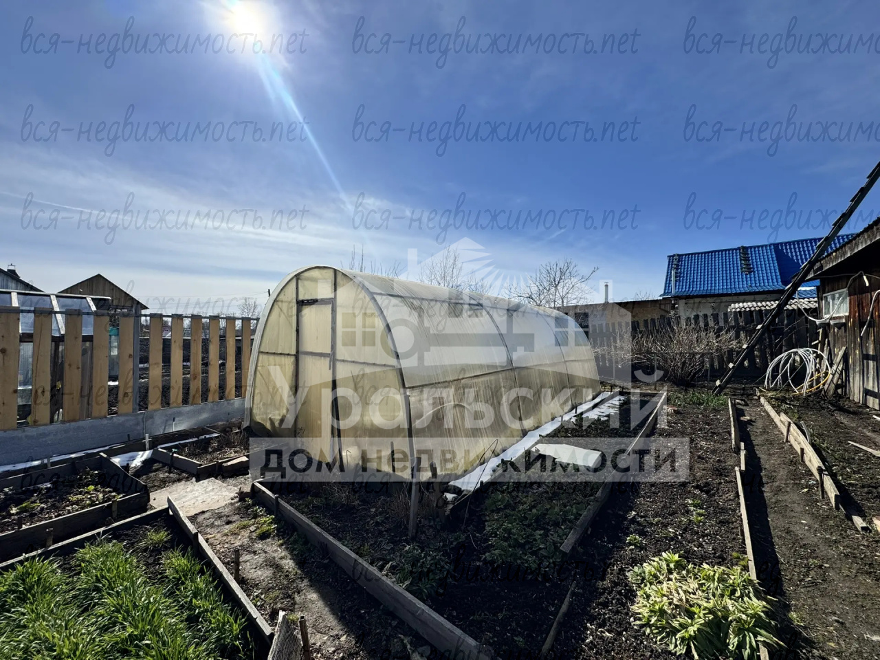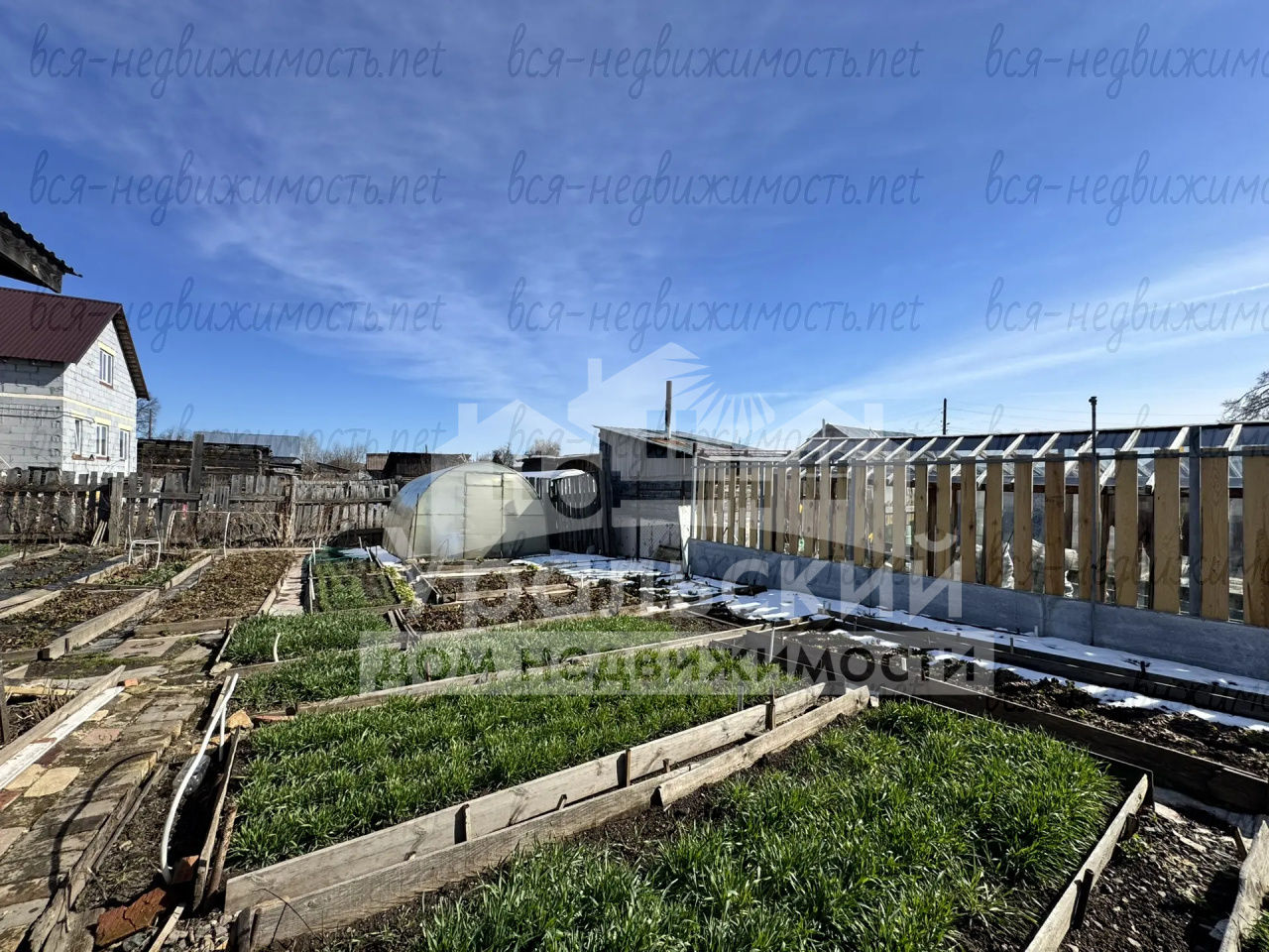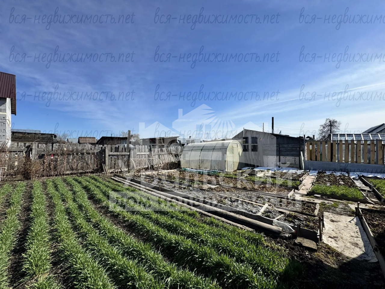 Участок облагорожен, огород сажали каждый год, хорошая плодоносная земля. В огороде 2 теплицы, сформированы грядки. Из насаждений: яблони, вишня, груша, крыжовник, жимолость, смородина красная и черная, малина, клубника, земляника.