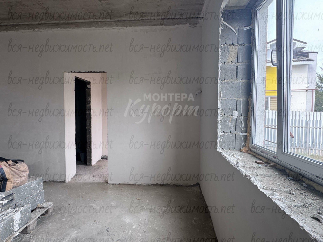 Первый этаж кухня гостиная + санузел, прихожая. Второй этаж-свободная планировка.