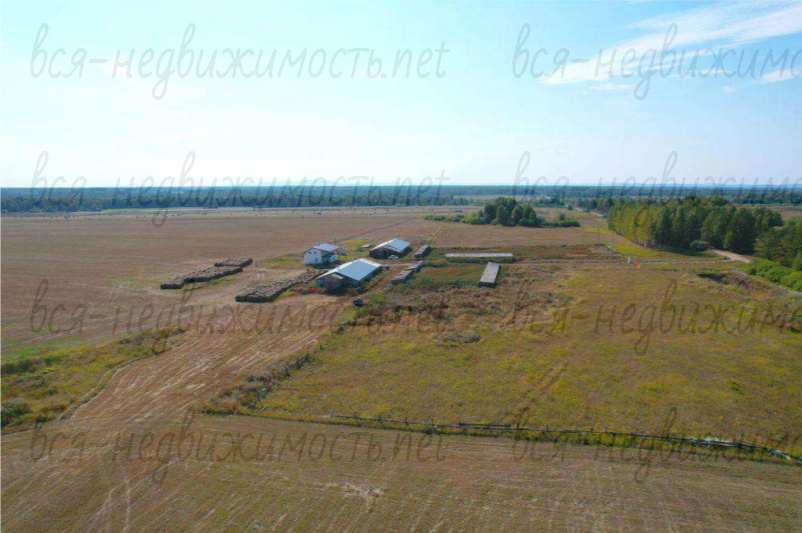 На общем участке имеется: Административное 2х этажное здание площадью 150 м2, два коровника (склада) по 280 м2 каждый, собственная подстанция с выкупленной мощностью 60 кВА.
