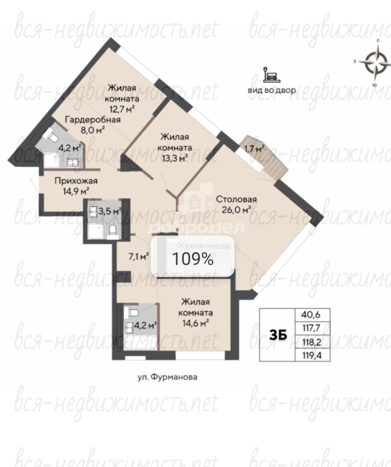 площадь: 118,5 м2;