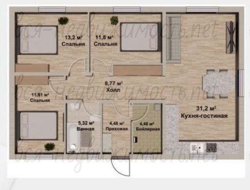 ✅ 3 спальни+кухня/гостиная+санузел+бойлер = 91м2 это площадь внутри дома!