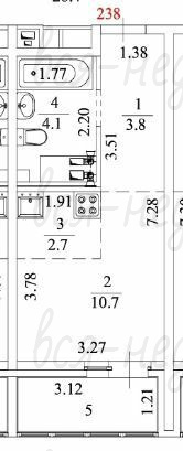 Площадь кухни: | 3 м2 |