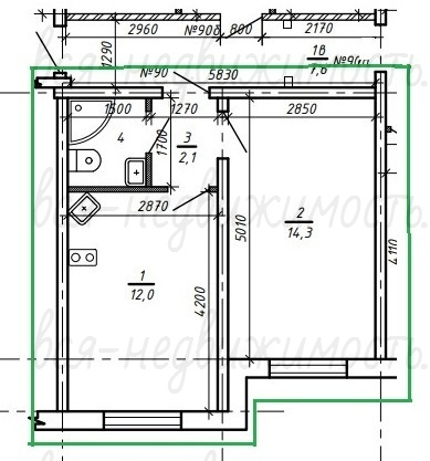 В продаже однокомнатная квартира.