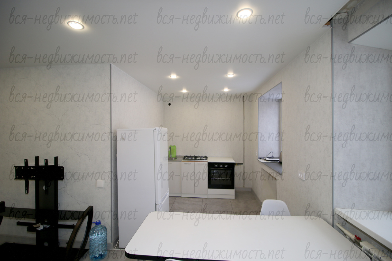 Кухня 6.3 кв.м., окно ПВХ, газплита, духовой шкаф, холодильник.