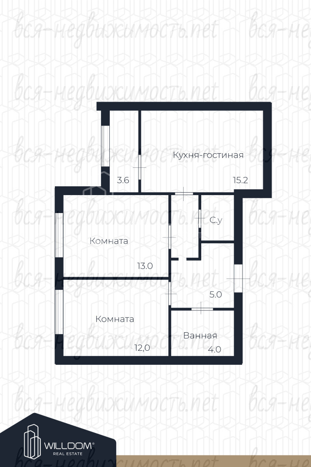 - Эргономичная планировка: просторная кухня-гостиная 15,2 м2 с выходом на тёплую лоджию, две спальни 12 м2 и 13 м2, два санузла, просторная прихожая с нишей под шкаф-купе. Отличный вариант для семей с детьми.