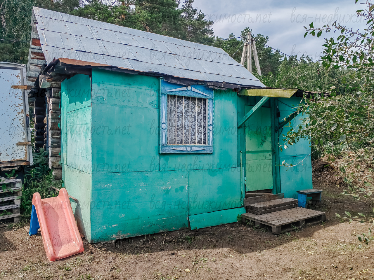 - на участке расположен небольшой дом из бревна — идеальное место для отдыха;