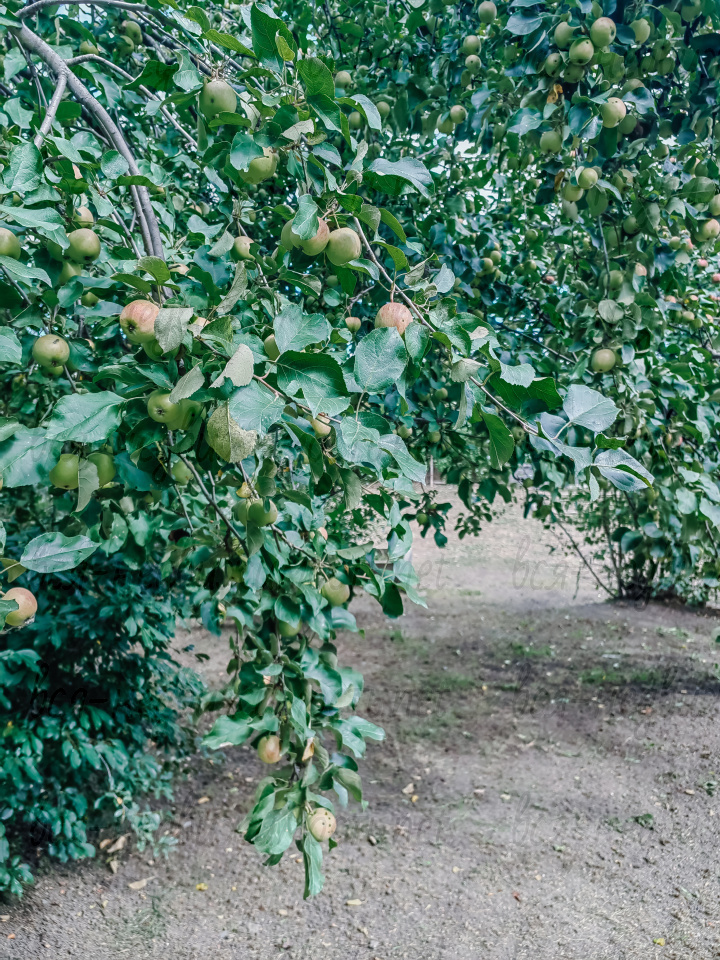 - развитая зелёная зона: много плодоносящих кустов и деревьев (яблони, вишни, малина, смородина и др.).
