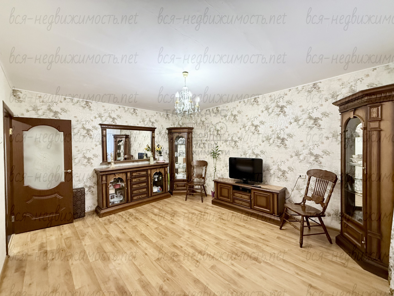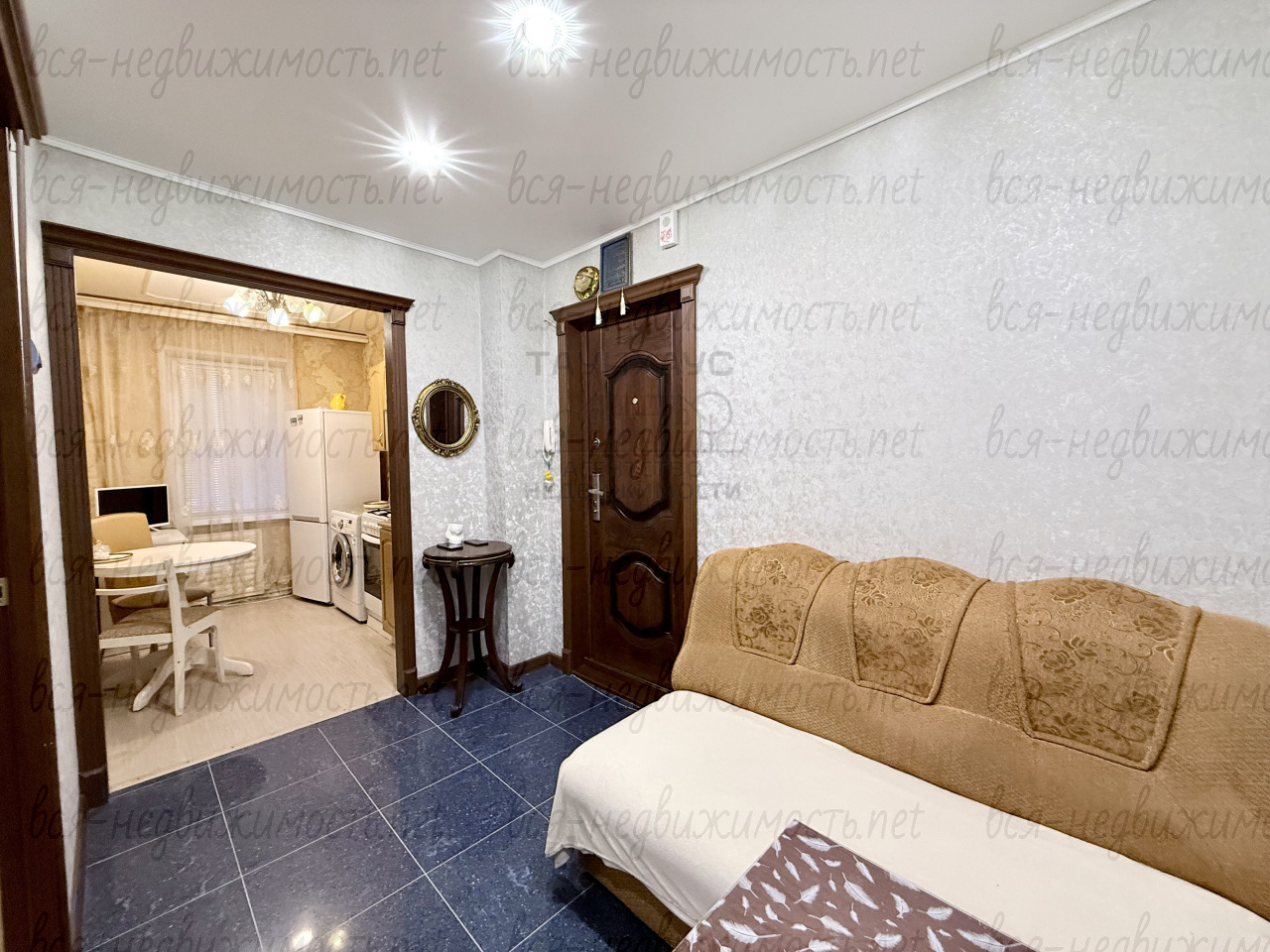 - На полу в прихожей и коридоре плитка, в комнатах ламинат