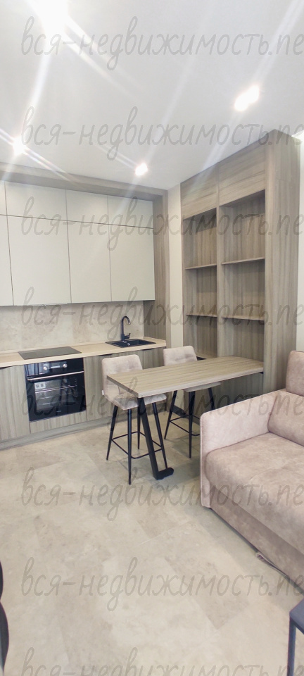 В студии выполнен качественный евроремонт,установлена мебель, необходимая бытовая техника -заходи и живи.