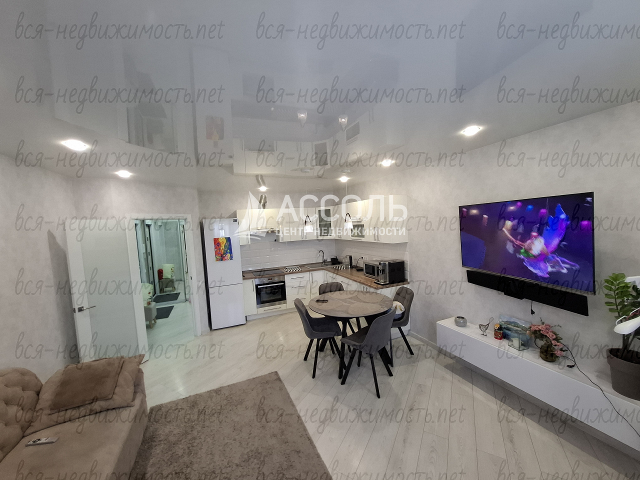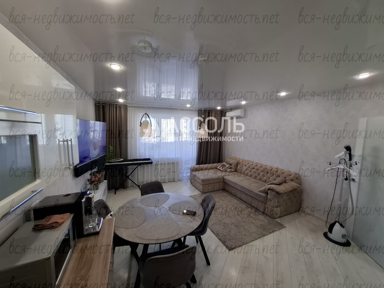 Кухня просторная, оборудована современной техникой, включая посудомоечную машину и водонагреватель. В гостиной и комнате установлен кондиционер, что позволяет поддерживать комфортную температуру в любое время года.