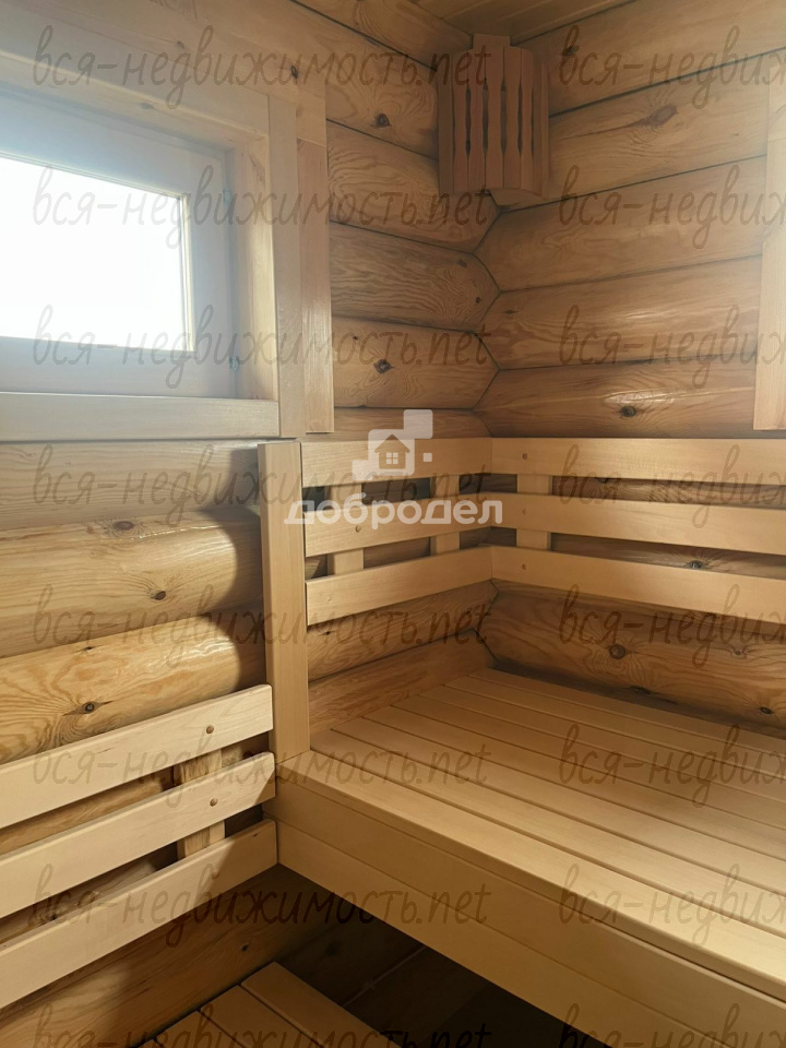 ДОМ: 1- этажный жилой дом-баня, площадью 56,5 кв.м , новая сауна, комната отдыха. Дом построен из бревна. Имеется гараж площадью 88 кв.м, гараж на две машины, ворота с электроприводом, смотровая яма. Гараж отапливается, построен из блоков. Въезд на территорию поселка через пост охраны, вся территория поселка под видеонаблюдением, в поселке есть детская площадка за которой можно наблюдать прямо из дома. Поселок безопасный, можно спокойно отпускать детей. Вода в поселке централизованная артезианская, скважина 140 м, фильтры, УФ-очистка, ежемесячный контроль СЭС, вкусная и прозрачная. Газ(проект, согласование, осталось подключить к котлу) , электроэнергия по договору со снабжающими организациями. Управляющая компания обеспечивает общее обслуживание территории поселка, фонари, детские площадки, хоккейный корт, роллеродром, обслуживание и ремонт дорог, вывоз снега зимой и покос травы летом в местах общего пользования, вывоз мусора. Свой пруд с пляжем, беседкой, клумбами, рыбалкой В поселке живут очень активные люди. Там проводятся детские праздники, есть даже свой дед мороз.