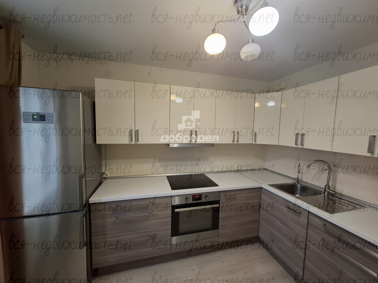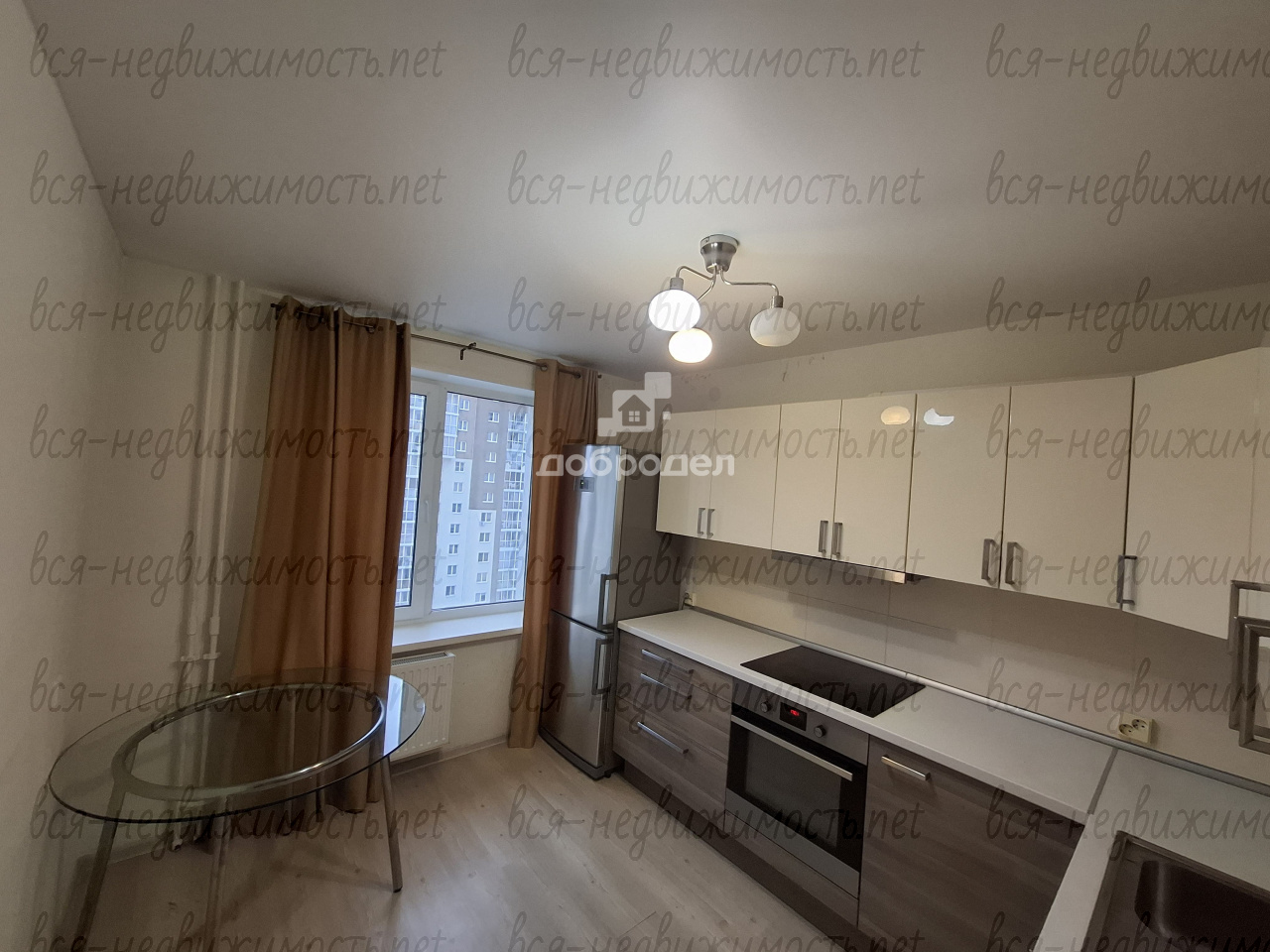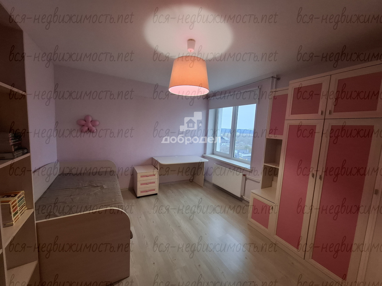 Большая кухня. Окна ПВХ. В комнатах на полу ламинат. Кух. гарнитур остается. В детской комнате мебель тоже оставим.