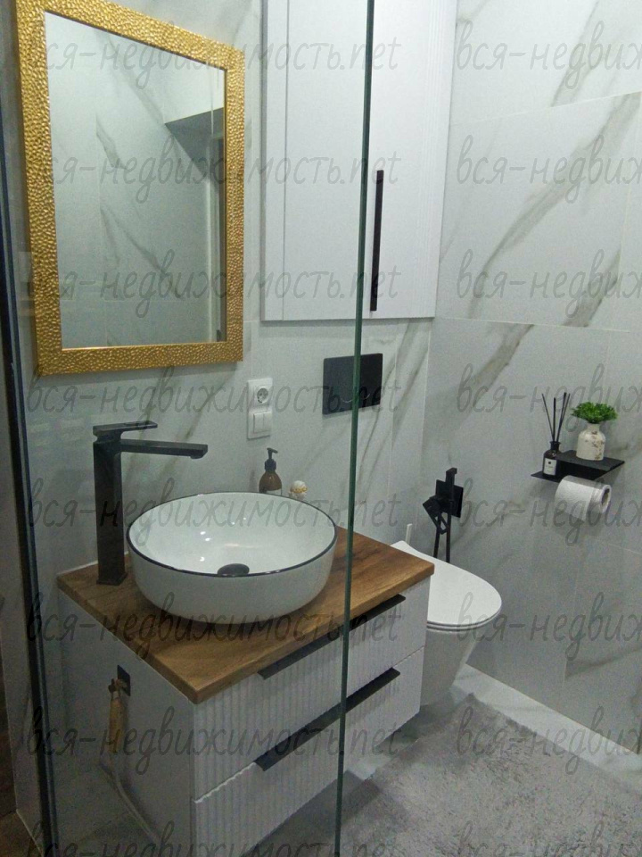Санузел - встроенный инсталляции, тропический душ со сливным трапом в пол как в шикарных отелях, электрический водонагреватель, электрический полотенцесушитель. Подвесная тумба умывальника по индивидуальному заказу. В сливах установлены гидрозатворы.