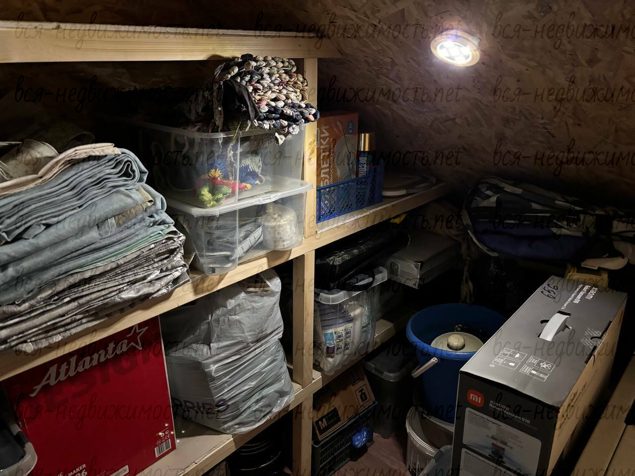 В подъезде организована своя кладовка. Полностью отделана. Полки для хранения ( последние фото)