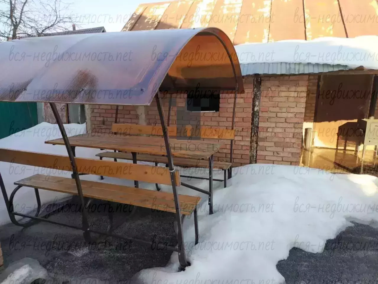 - кирпичная баня, беседка с мангалом