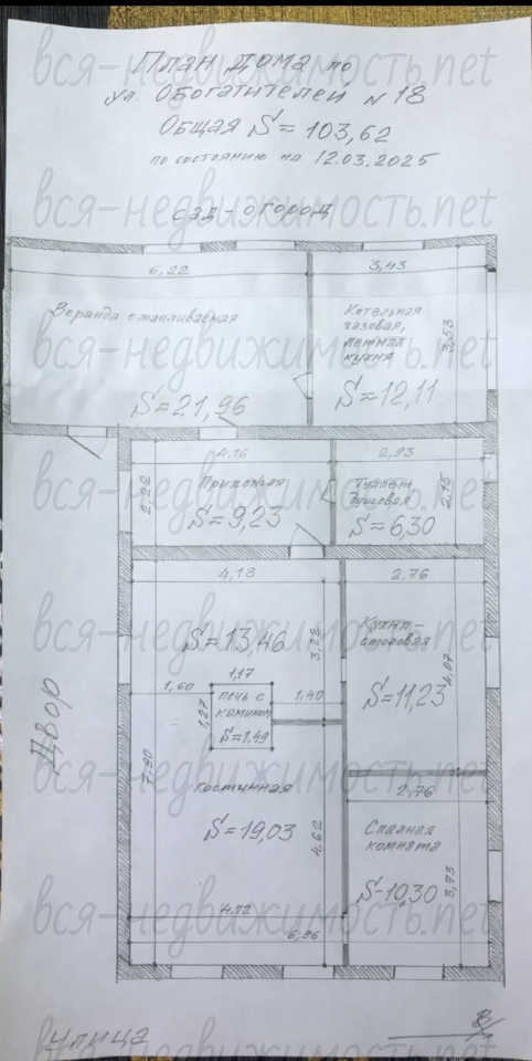 · Площадь: 103,62 кв.м, капитальные кирпичные стены.· Отопление: Комбинированный вариант. Сейчас дом отапливается печью (тепло и уютно). Установлен газовый котел + батареи — ждем подключения газа. Как только подключат — будет автоматическое газовое отопление.