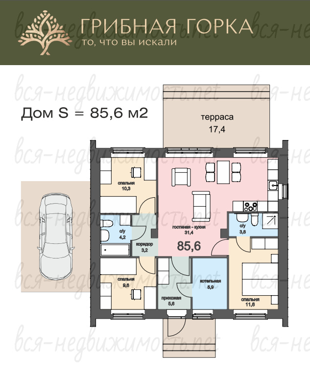 - Площадь дома: 88,9 кв.м.