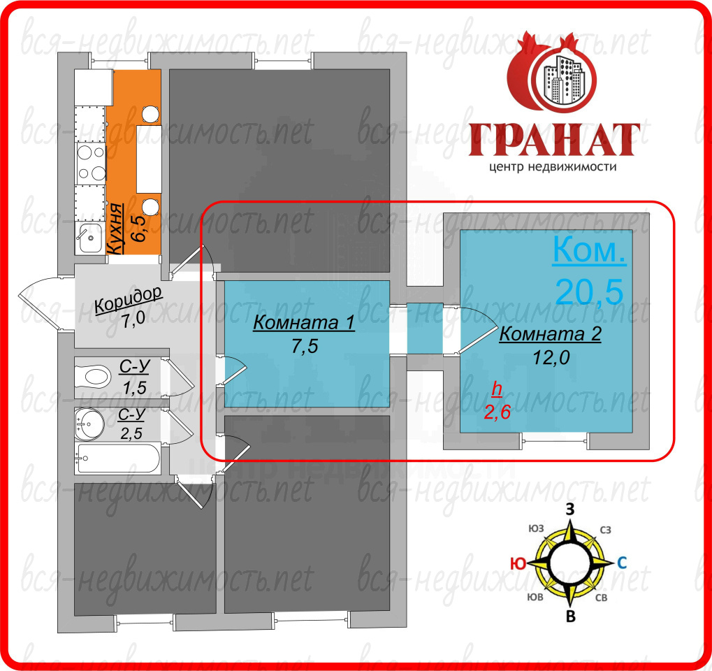 | Санузел: | Раздельный |