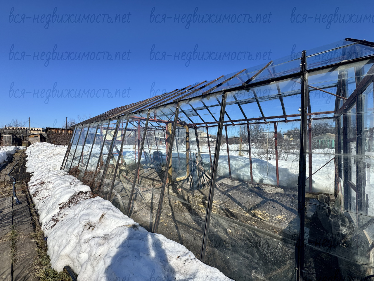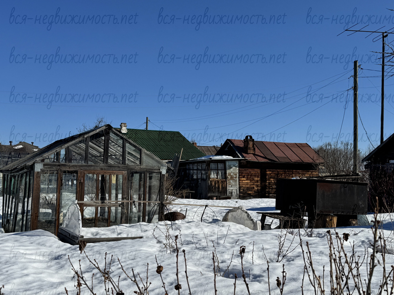 Хорошая баня, дровяник, 2 теплицы, бак для воды, овощная яма сухая, обложена кирпичом.