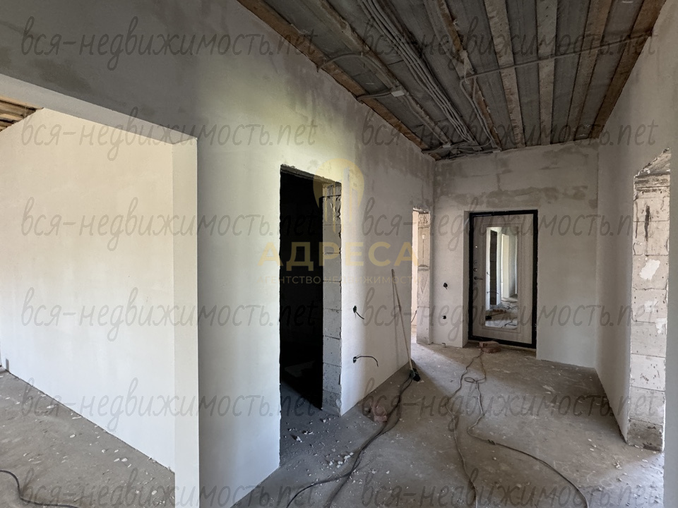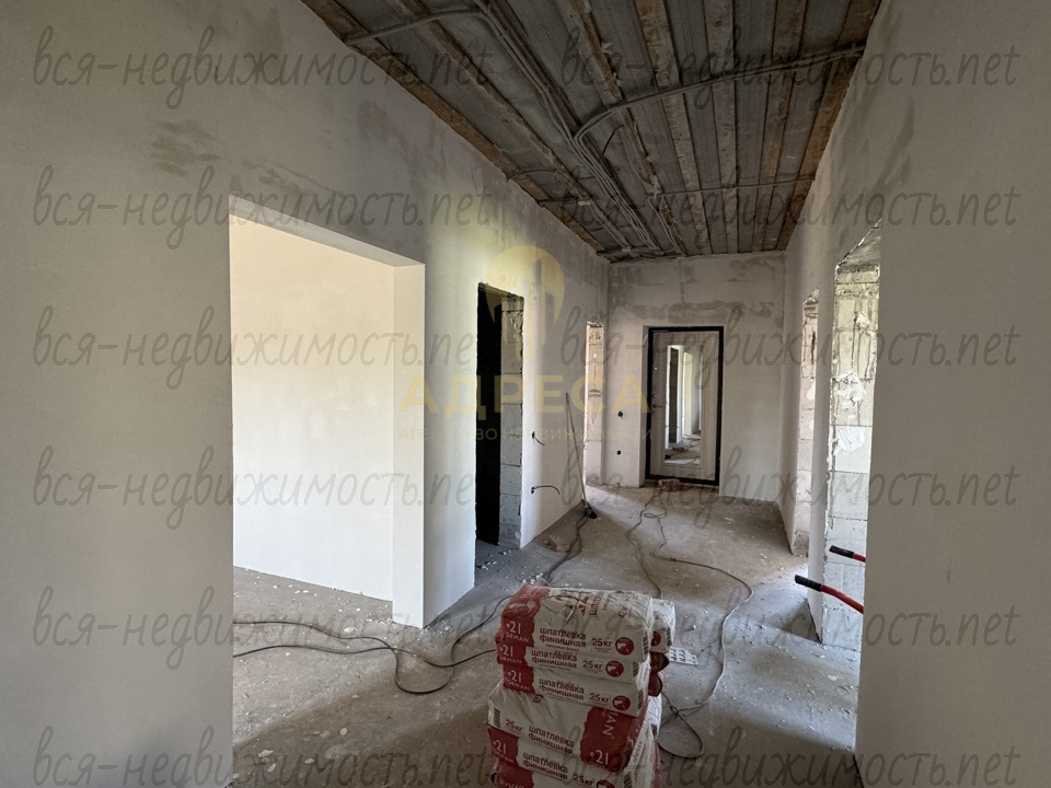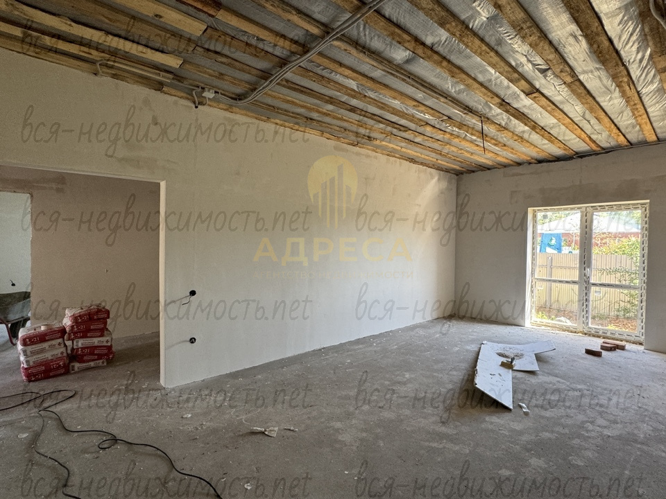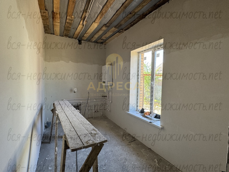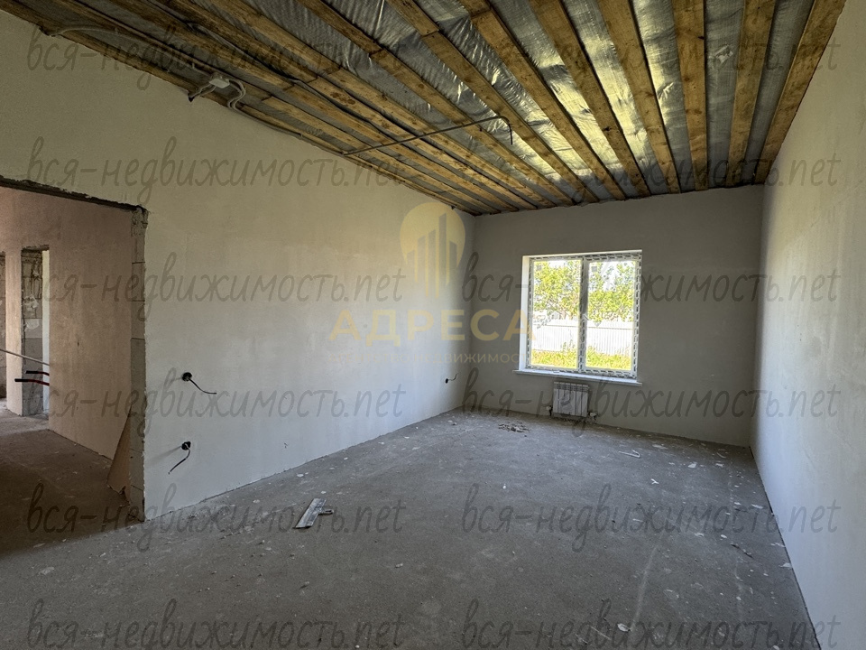 ?Предчистовая отделка, подведен газ, установлен двухконтурный газовый котел, разведены по дому канализационные и водопроводные трубы, электрика, отопление, сделана стяжка пола, стены отштукатурены под обои, потолок подшит ОСБ.