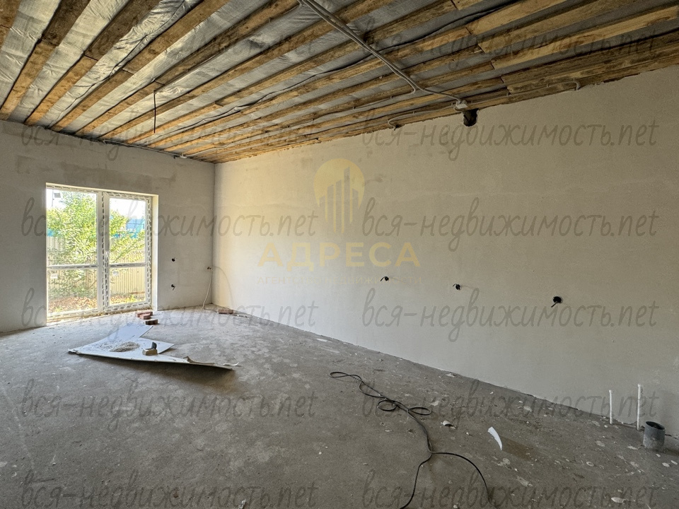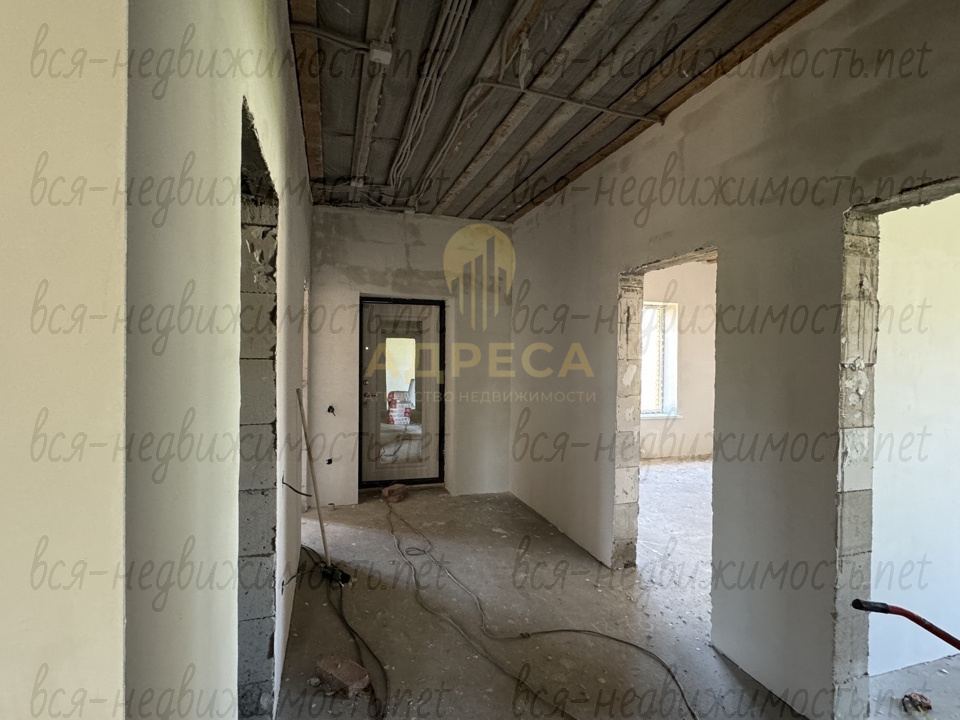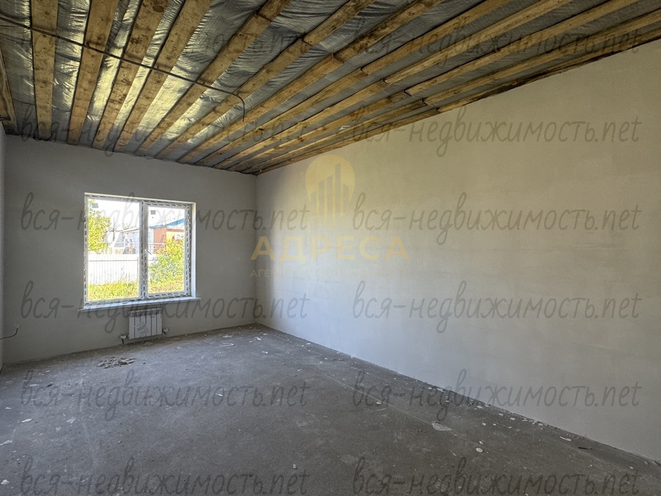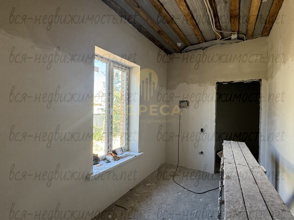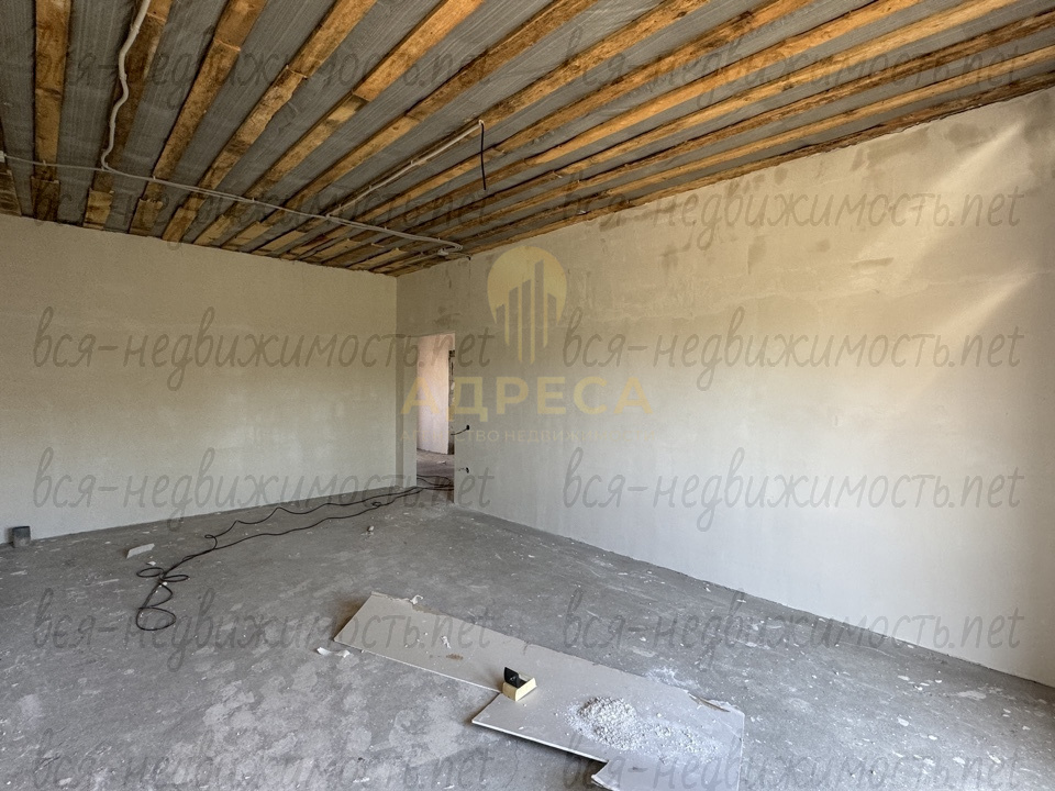 ?Предчистовая отделка, подведен газ, установлен двухконтурный газовый котел, разведены по дому канализационные и водопроводные трубы, электрика, отопление, сделана стяжка пола, стены отштукатурены под обои, потолок подшит ОСБ.