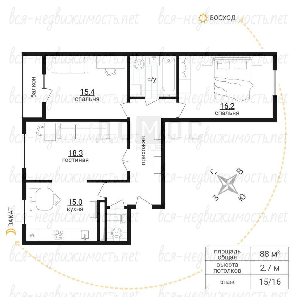 | Этаж: | 15/16 |