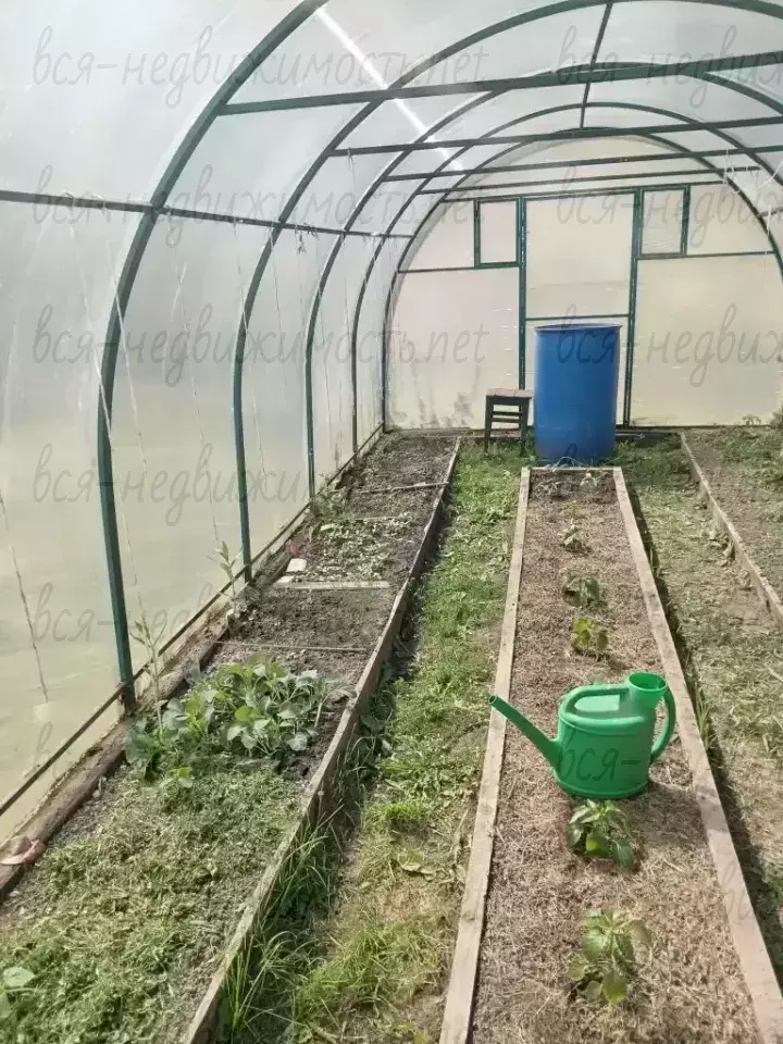 Участок 875 кв.м., разработан, границы установлены. На участке плодоносящие деревья, две теплицы из поликарбоната на 2 и 3 метра, беседка. По периметру участка забор, ворота на въезд.