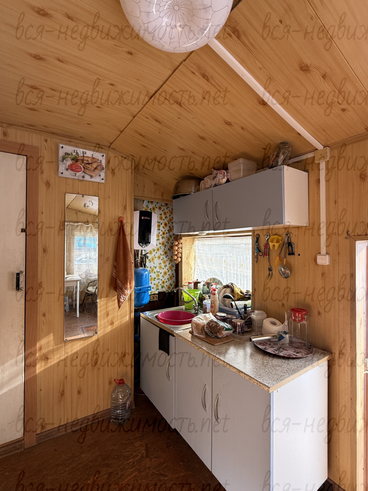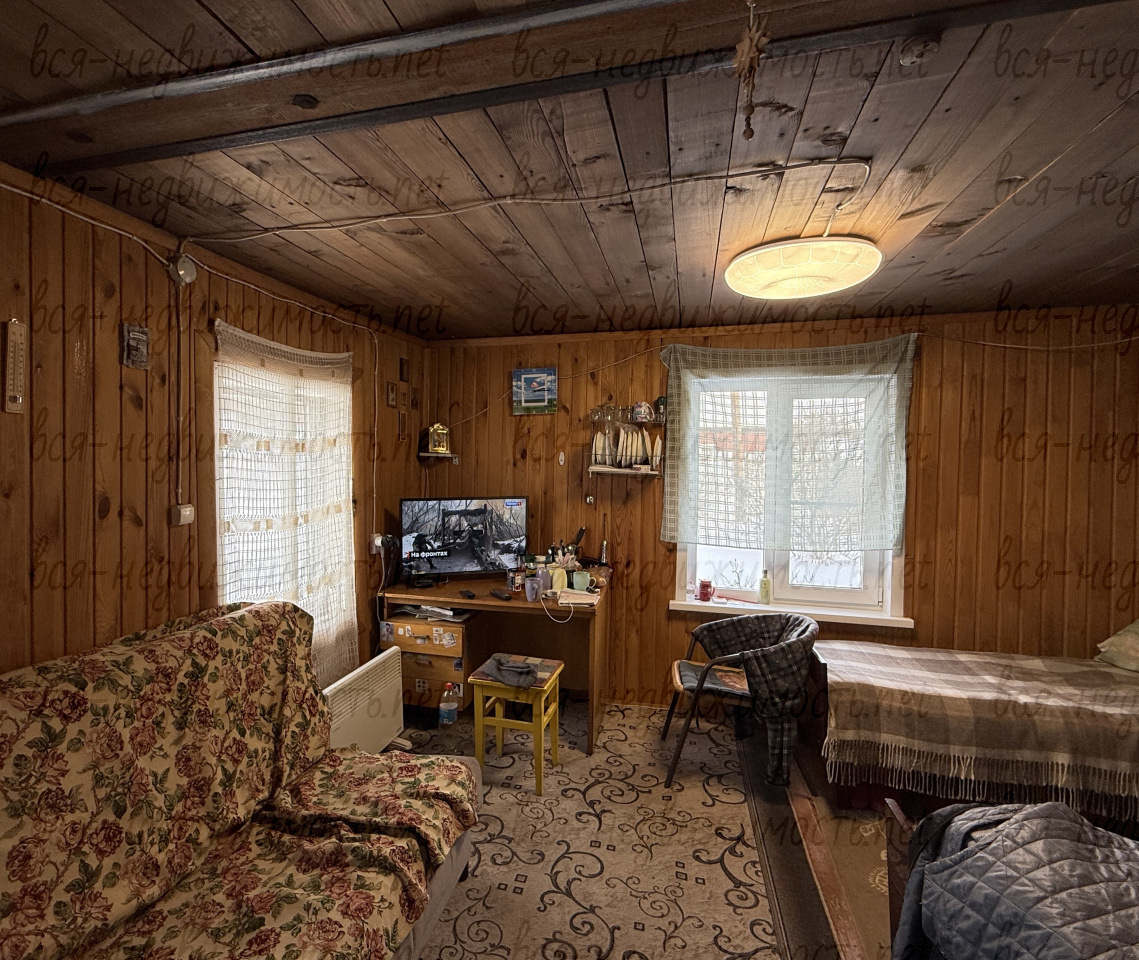 Дом из бревна, на фундаменте, одна комната. Можно проживать круглогодично. К дому пристроена летняя комната и веранда (не входит в общую площадь дома). Электричество 380 Вт, отопление печное, газ проходит вдоль участка. Своя скважина, в доме летний водопровод. Удобства на улице. Действующая баня.