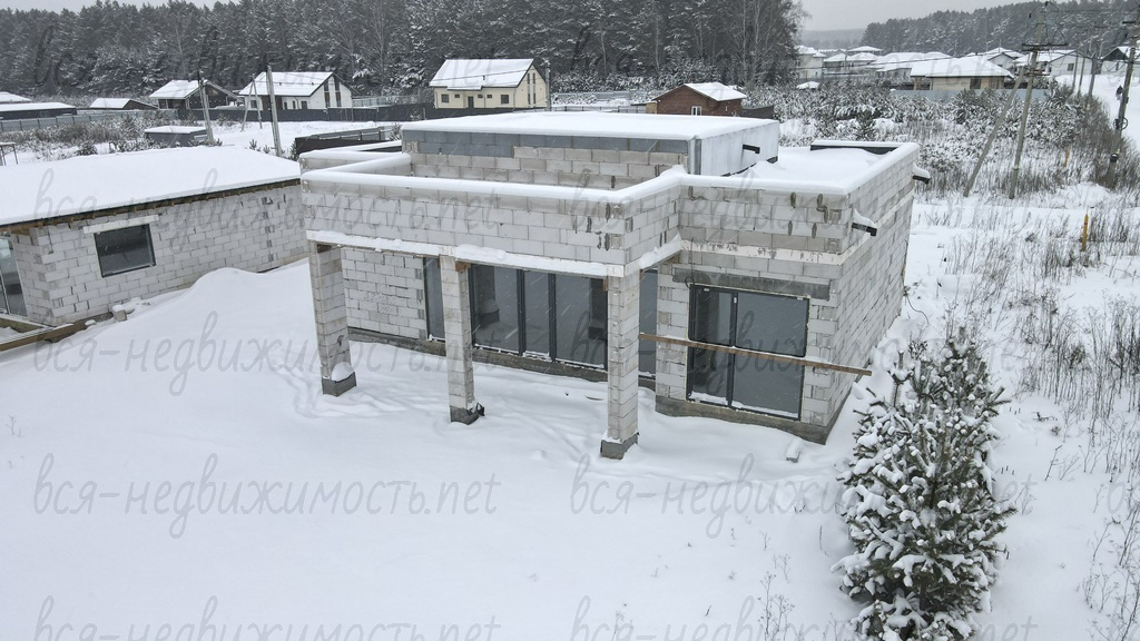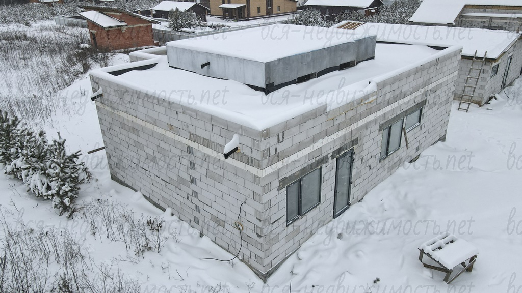 - Коробка под крышей, окна, двери, скважина (уже заведена в дом), теплые полы по 1 этажу (сделана разводка)