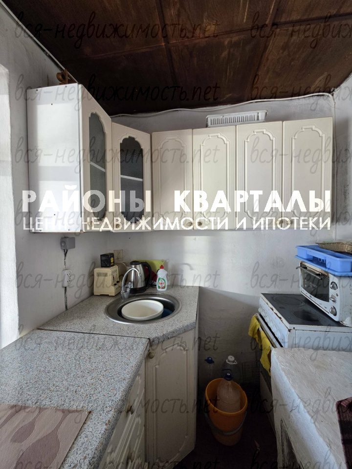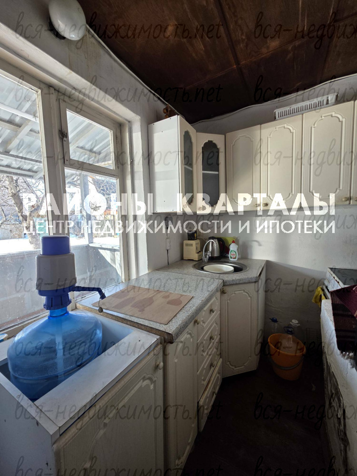 Дом кирпичный оштукатурен, комната и кухня на первом этаже, просторная терраса. Санузел на улице. Вода для полива из колодца.