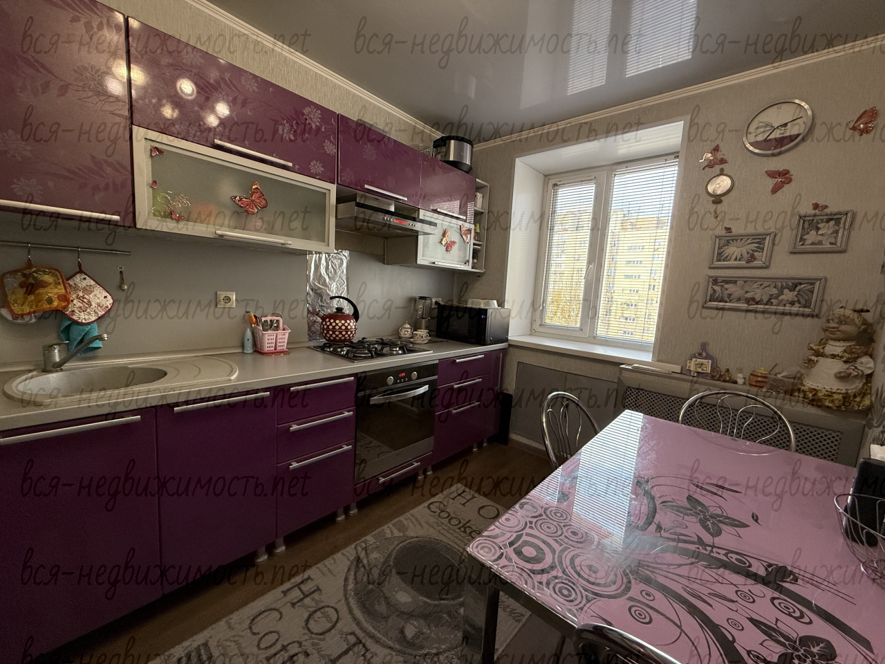 пластиковые окна;натяжной потолок,полы ламинат,плитка.