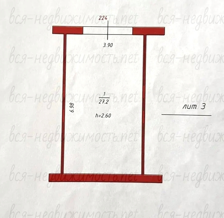 СТЕНЫ - кирпич (выровнены и отштукатурены), длина - 6,98 м, ширина - 3,90 м, высота - 2,60 м. Общая площадь - 27,2 кв.м. (не считая подземной части). Есть электричество, вентиляция.