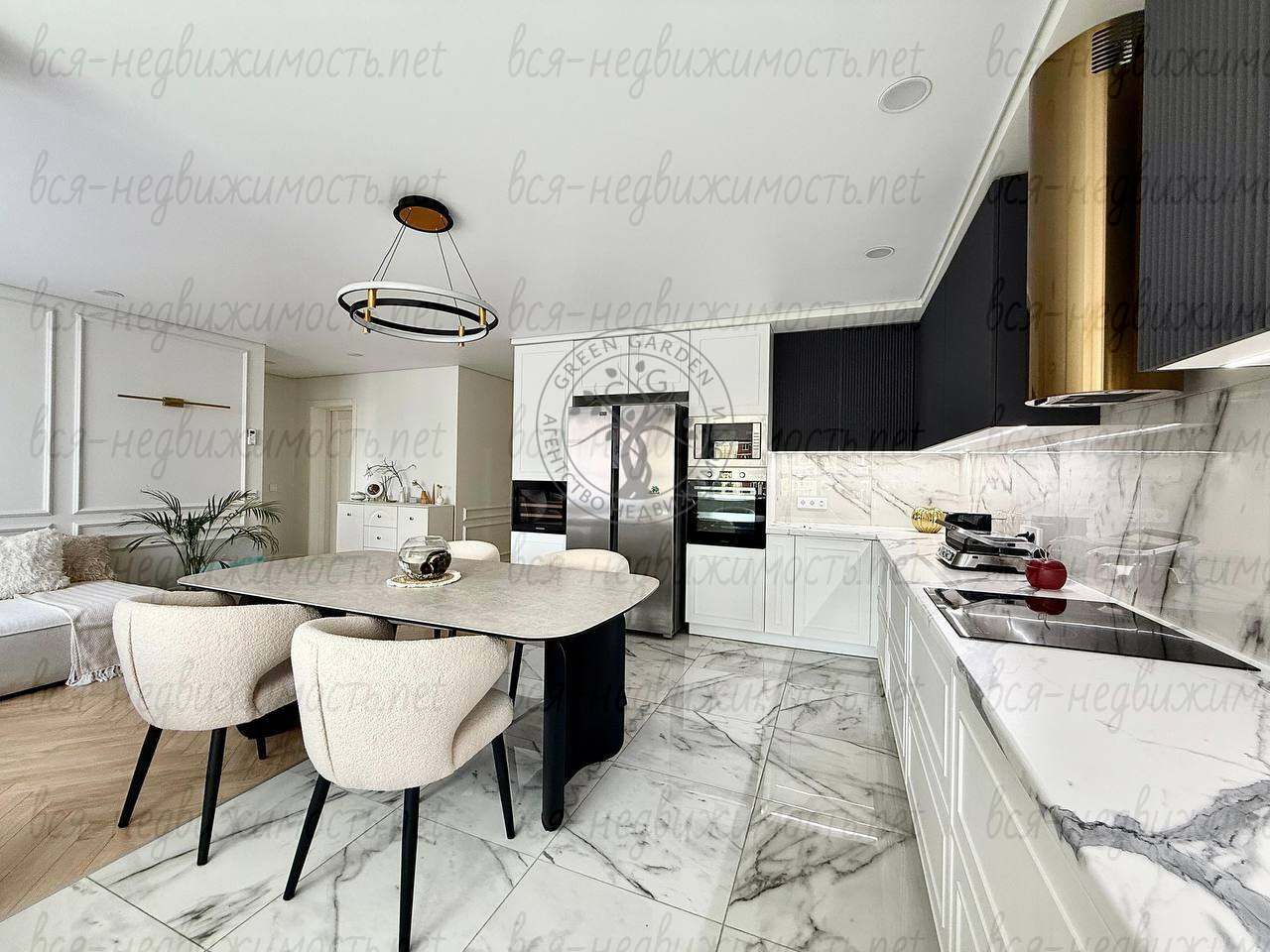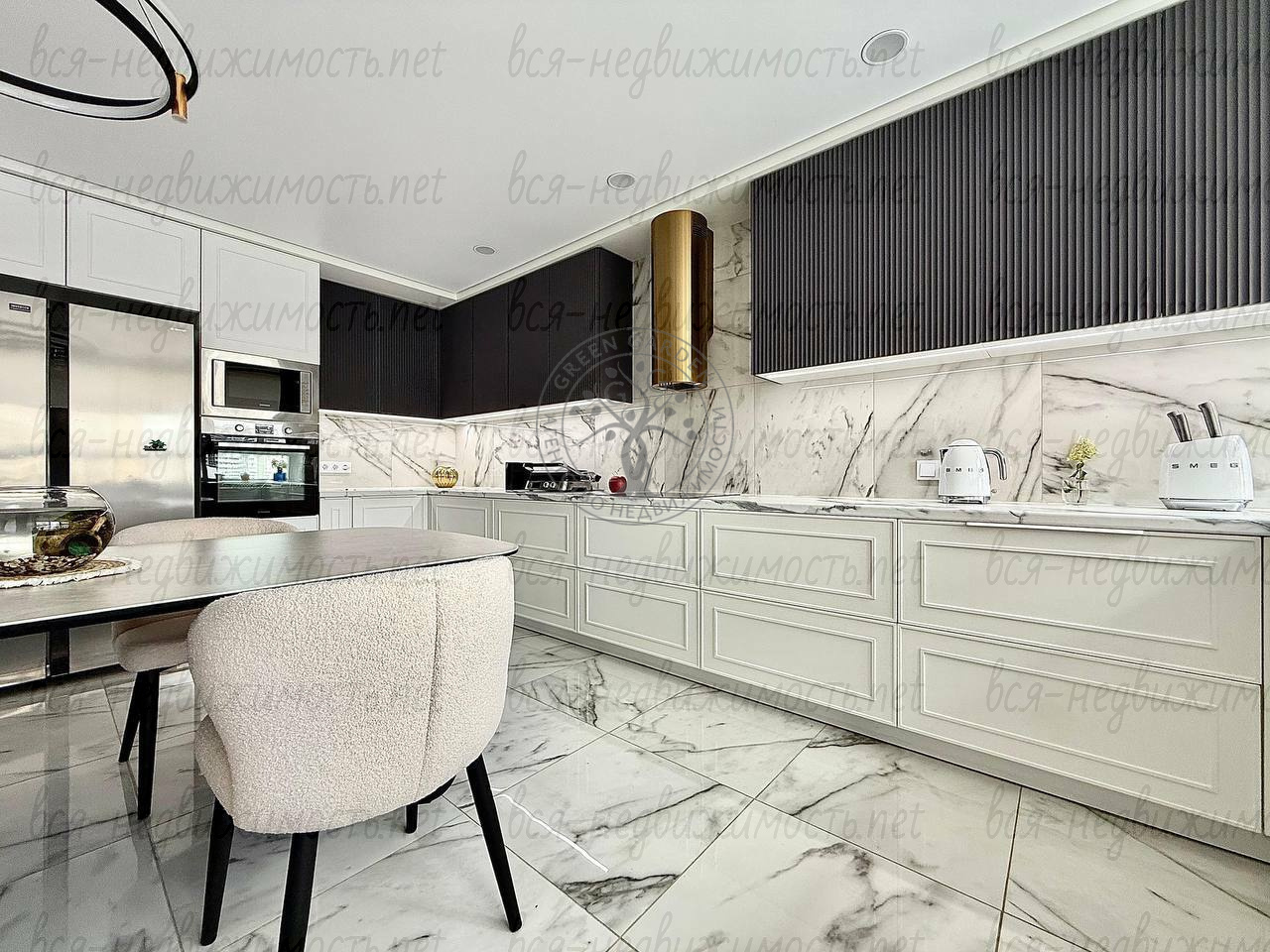 · ? Техника: Кондиционеры во всех комнатах, холодильник, стиральная машина, посудомоечная машина, винный шкаф ?, варочная панель, духовой шкаф, вытяжка.