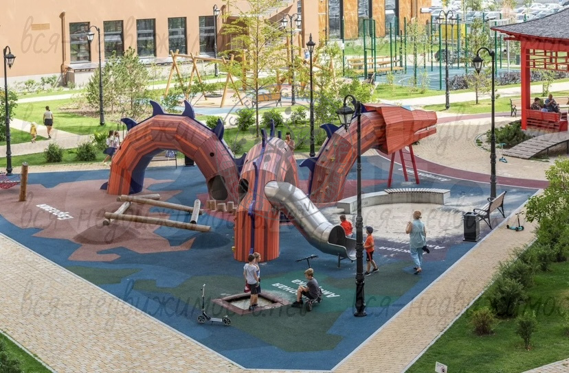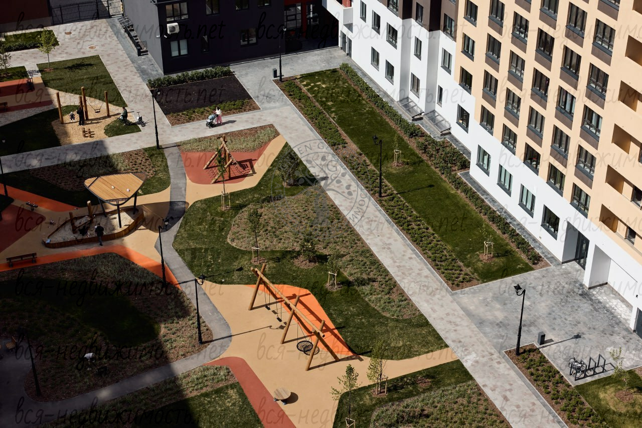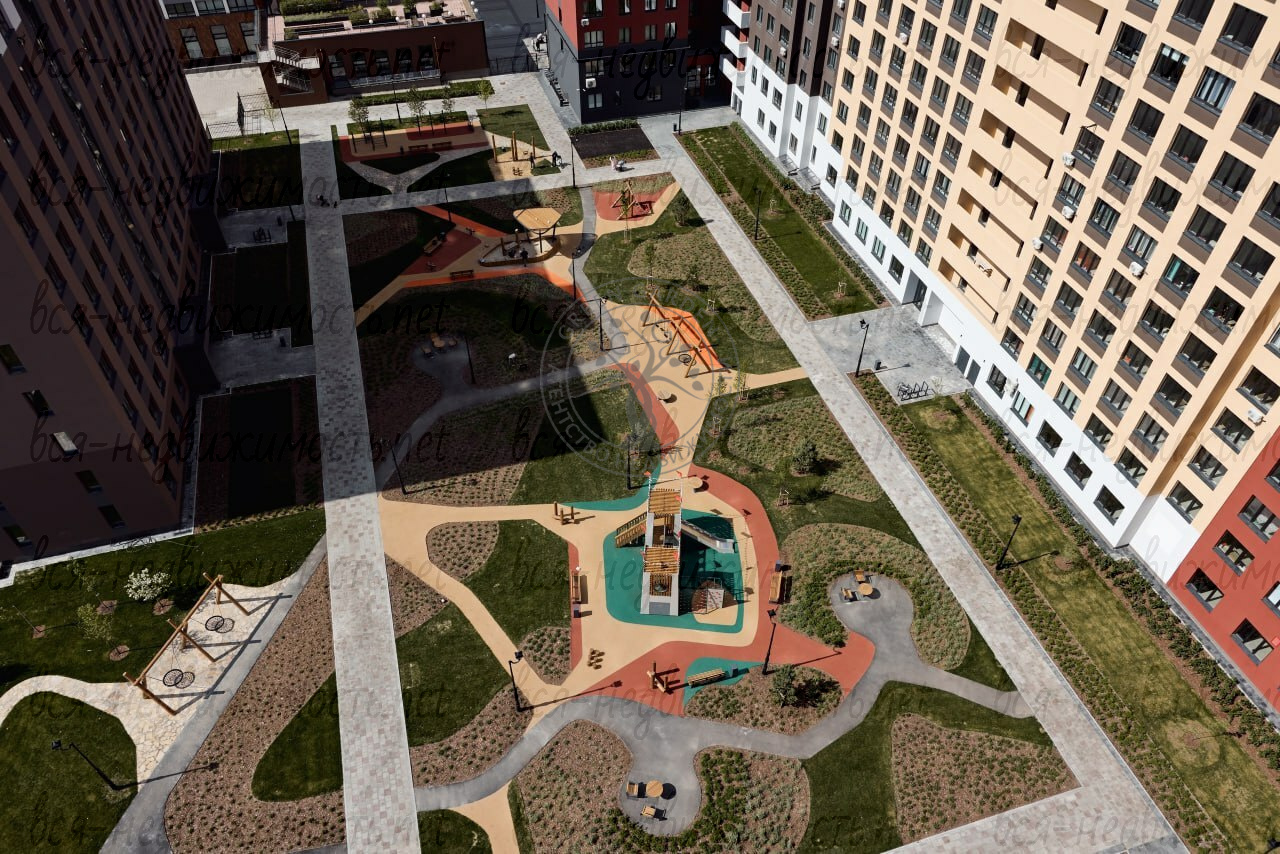 · ? Благоустроенный двор: детские и спортивные площадки, зоны отдыха, фонтаны, терраса для жильцов.