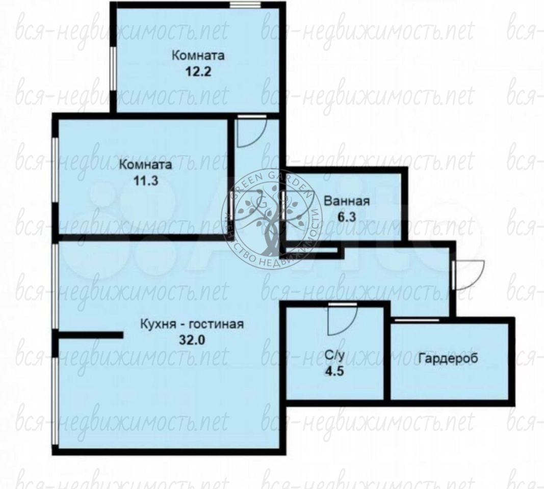· Простор и свет: Общая площадь 77.3 м² с изолированными комнатами 11,3 м² и 12,2 м².
