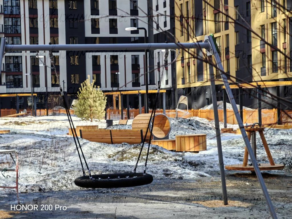 Во дворе предусмотрены различные зоны для детей всех возрастов: игровые комплексы из натуральных материалов, качели необычных форм, большая песочница и другие.