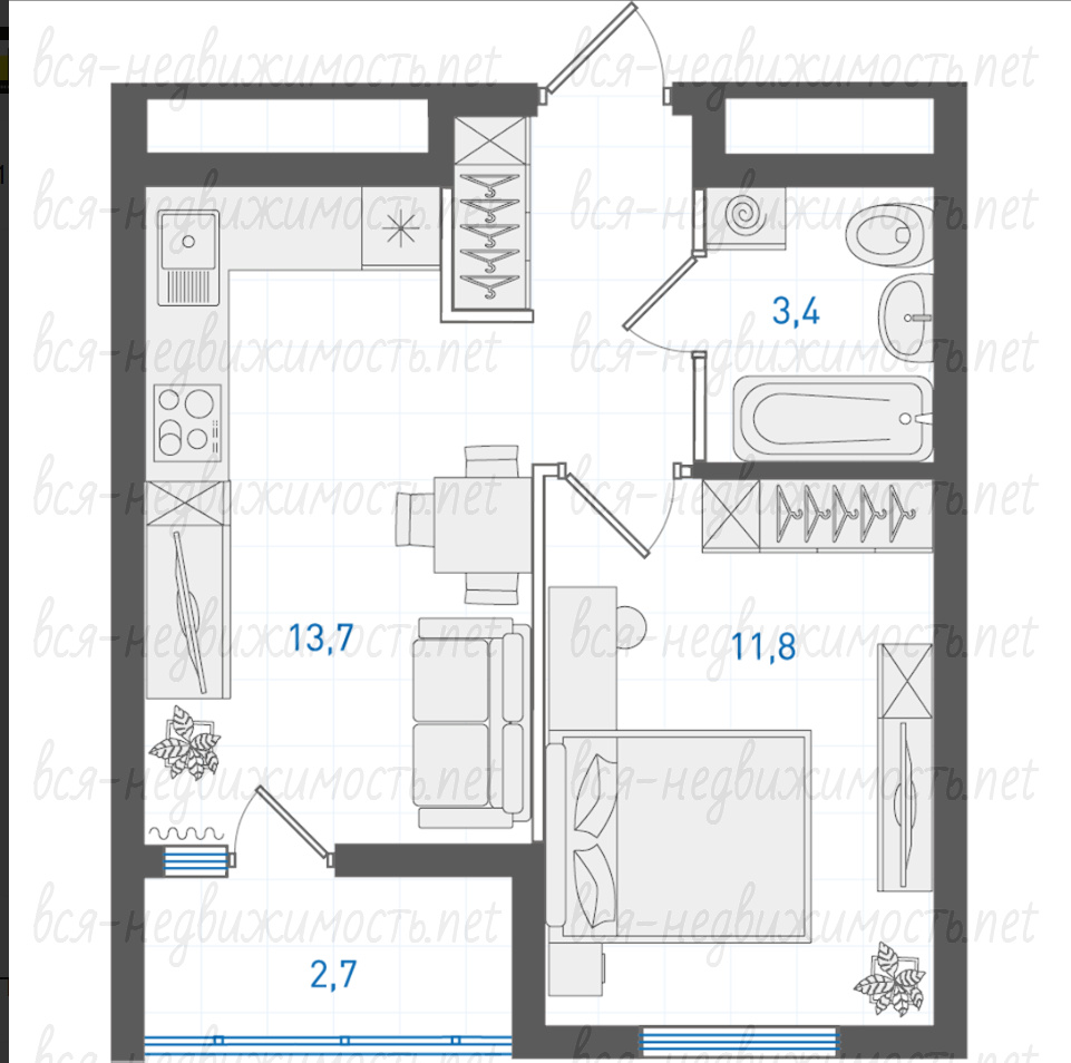 | Санузел: | Совмещенный |
