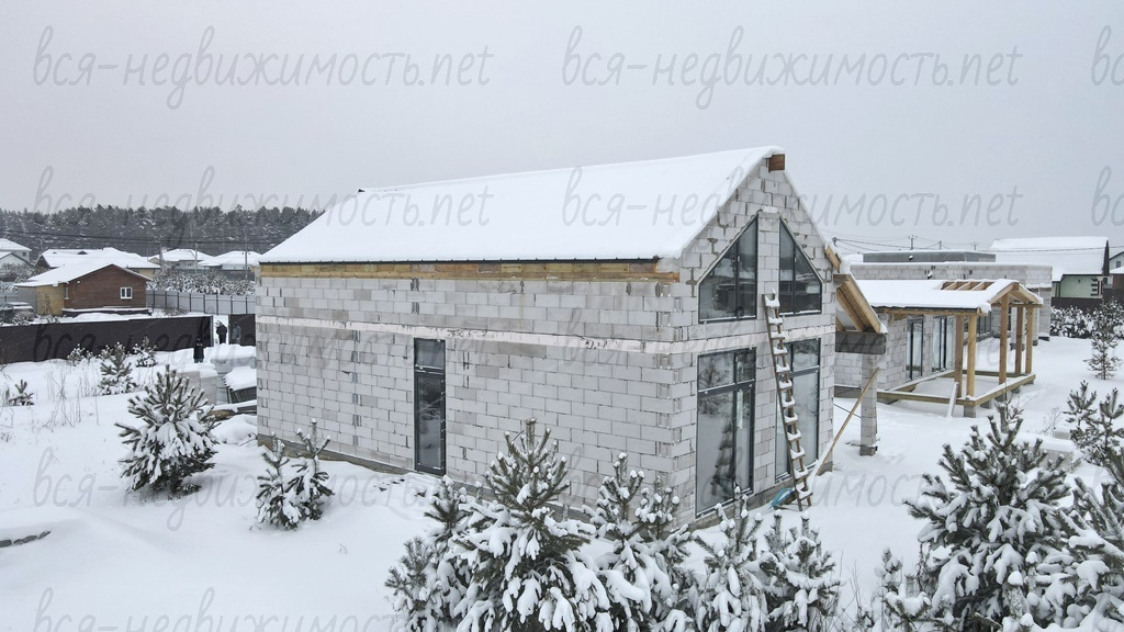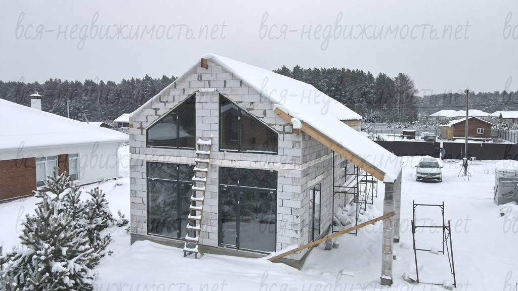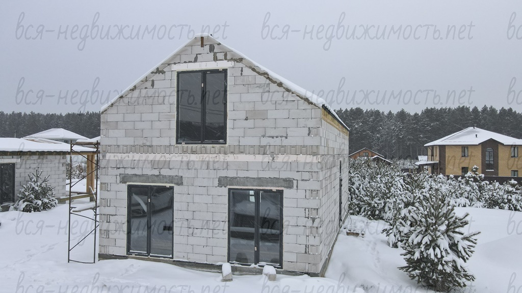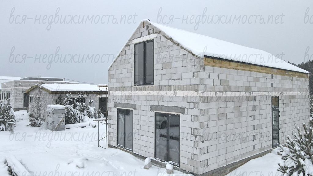 - Коробка под крышей, окна, двери, скважина (уже заведена в дом), теплые полы по 1 этажу (сделана разводка)
