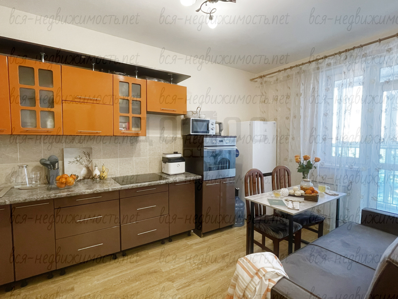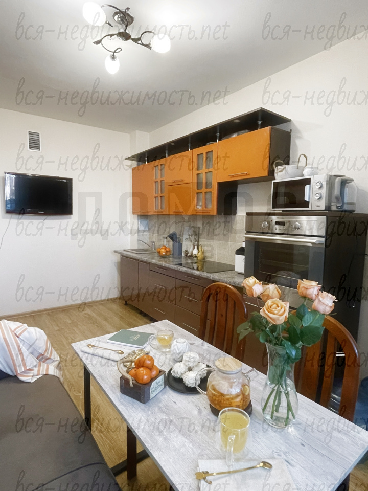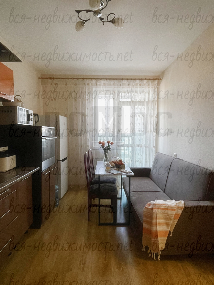 Полностью готова к проживанию. Остаётся вся необходимая мебель и техника: кухонный гарнитур со столом и стульями, холодильник, стиральная машина, в комнате остается шкаф, тумба.