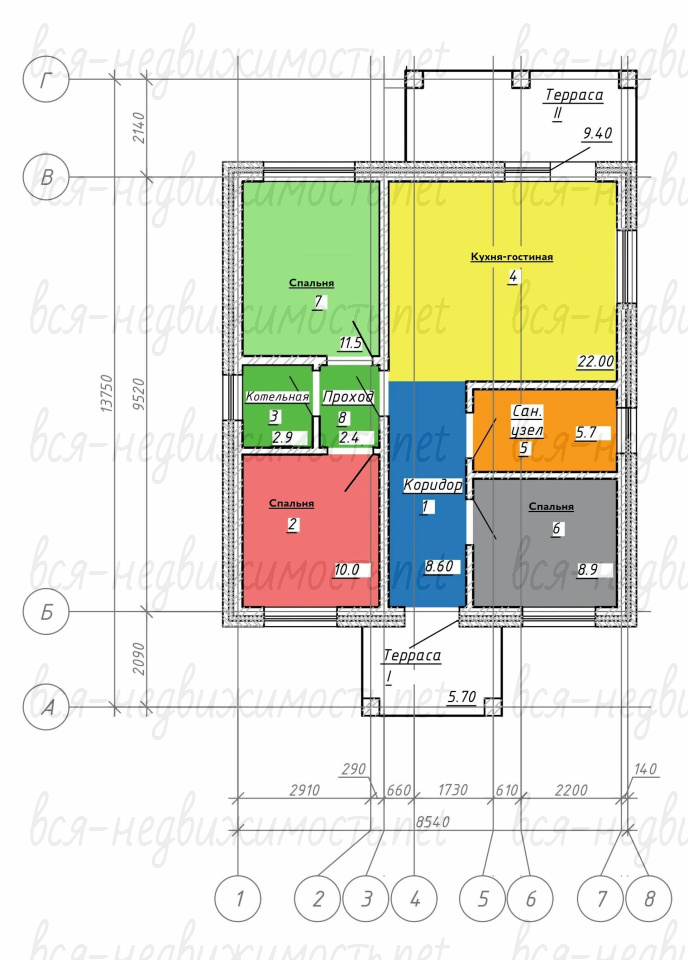 Планировка: кухня-гостиная 21 м2 с выходом на просторную террасу 10 м2 и панорамными окнами, 3 спальни по 12, 9 и 9 м2, просторный санузел 6 м2, котельная, коридор, крыльцо.