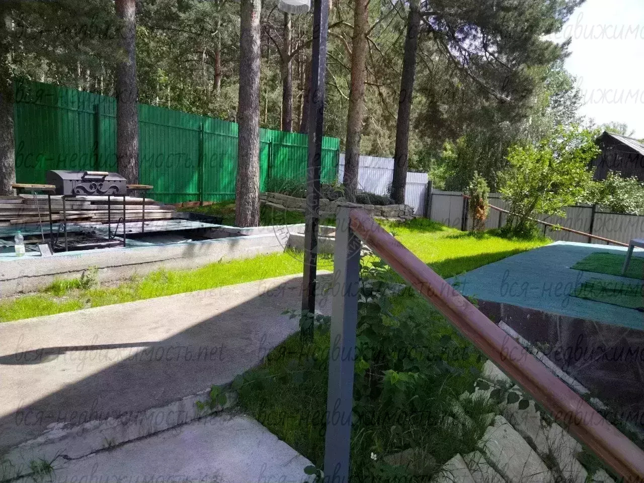 • Сад и огород: плодоносящие яблони разных сортов, отдельный огород.