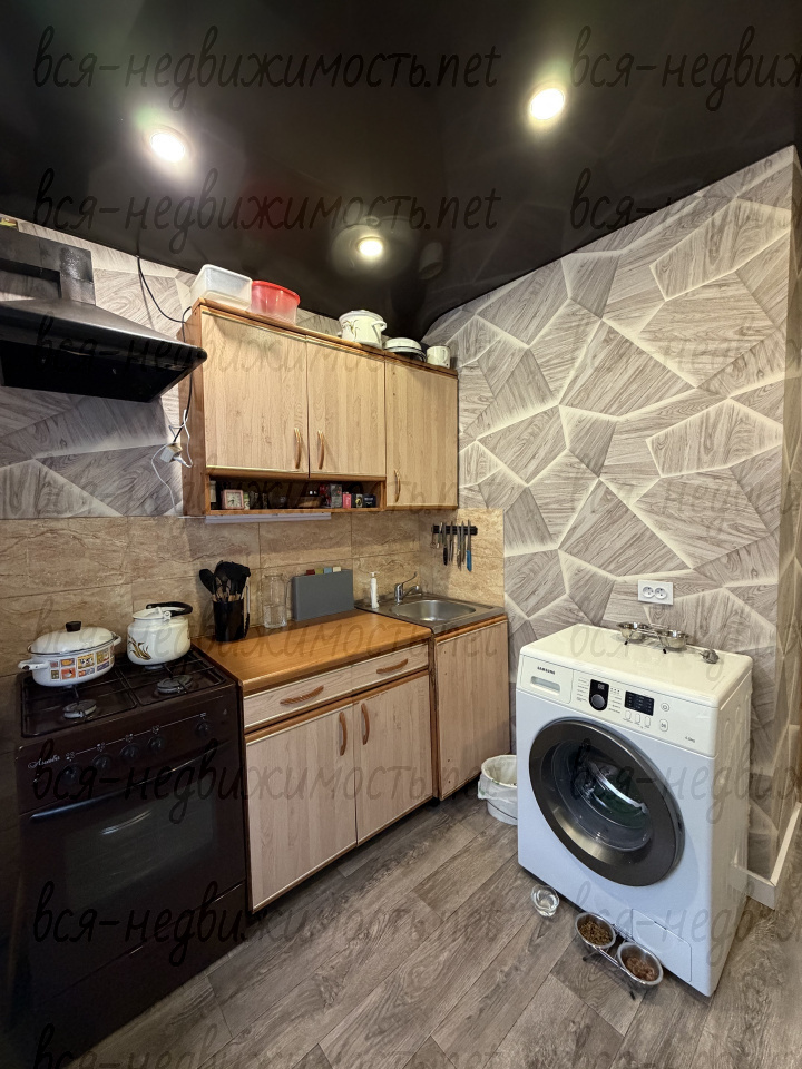 В квартире остается: плита, вытяжка, кухонные шкафы, так же полностью остается вся мебель в комнате (которая без ремонта).