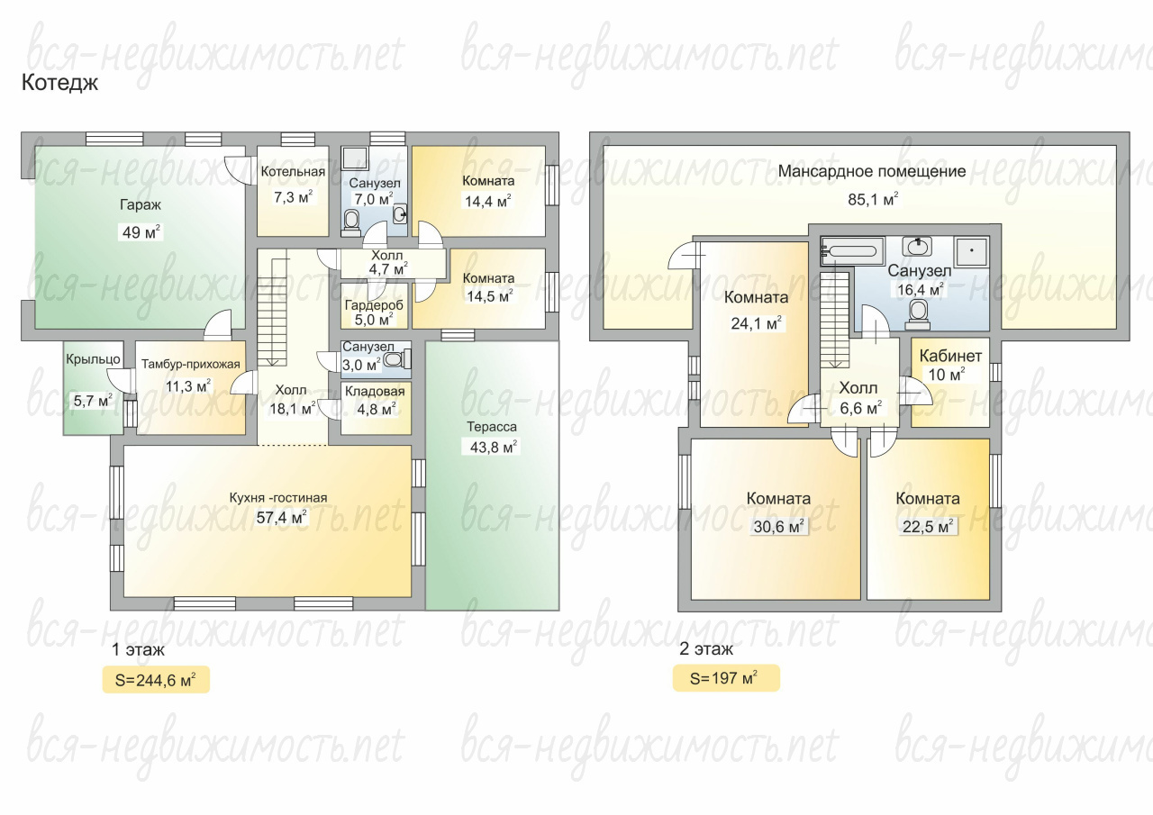 - Три спальни по 30,6 м3, 24,1 м2, 22,5 м2